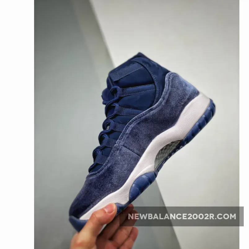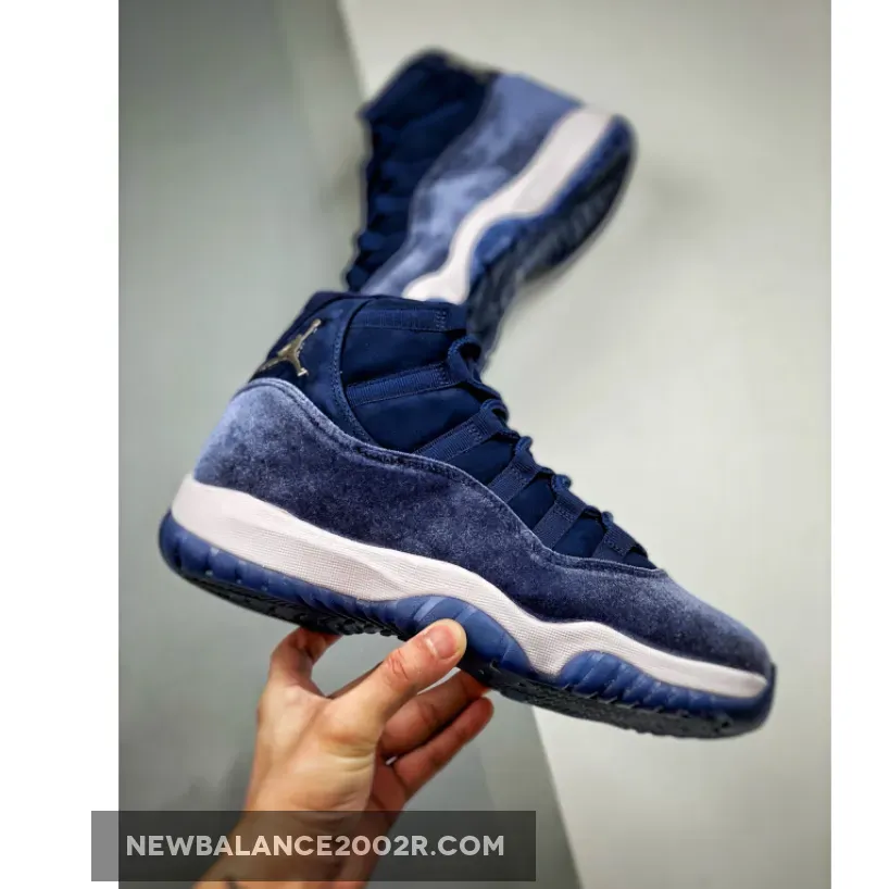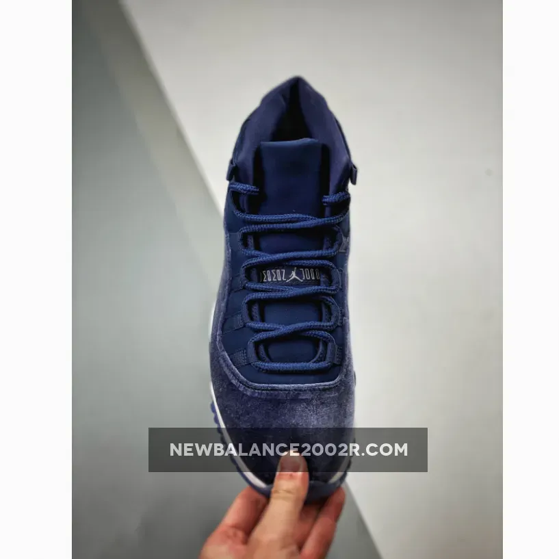 Color scheme on the Air Jordan 11 Velvet Midnight Navy is sleek. Velvet uppers lend a luxurious touch, while the Metallic Silver accents give it a premium feel. Overall, a stylish sneaker for everyday wear. #AJ11 #WinterVibes #Nike