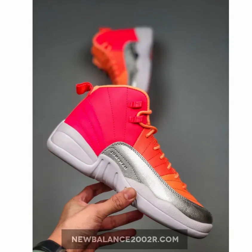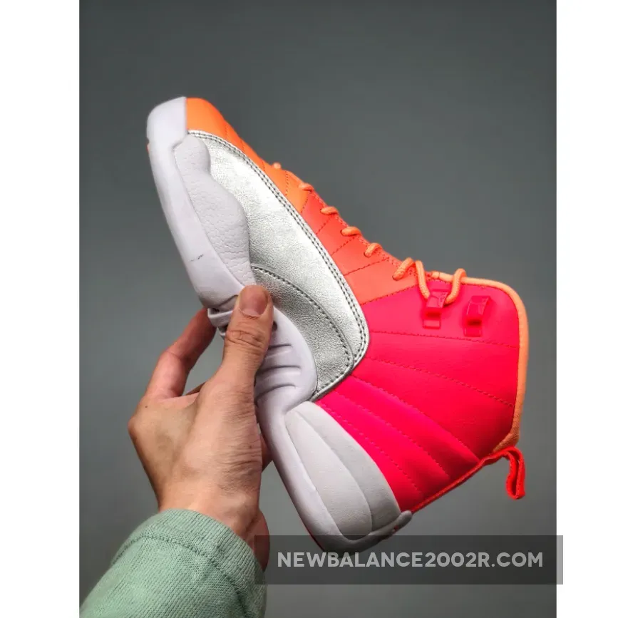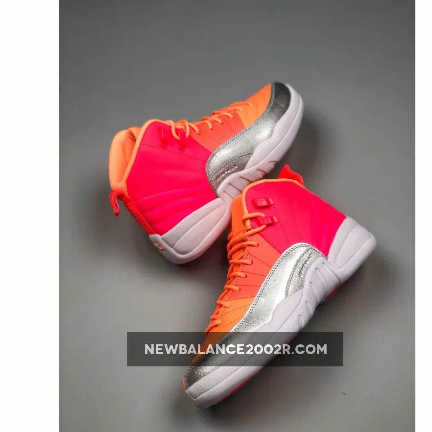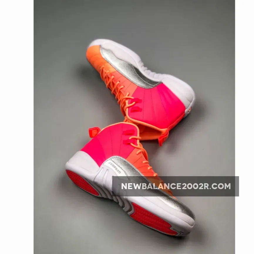 Dressed in a Racer Pink, Hot Punch, Bright Mango, and White color scheme. This Air Jordan 12 is highlighted with a tricolored upper in Orange, Punch, and Pink hues with Silver overlays. A White midsole and rubber outsole completes the design.