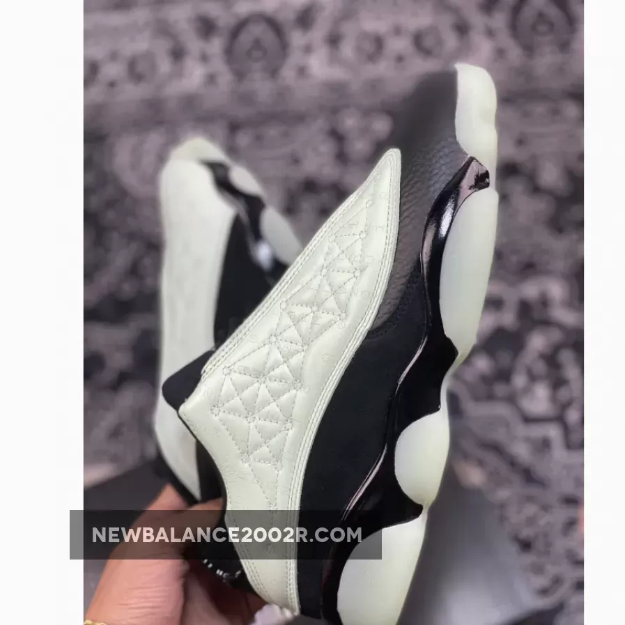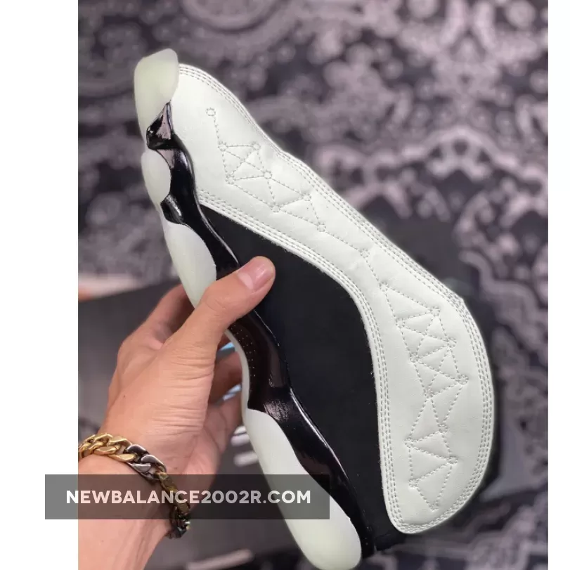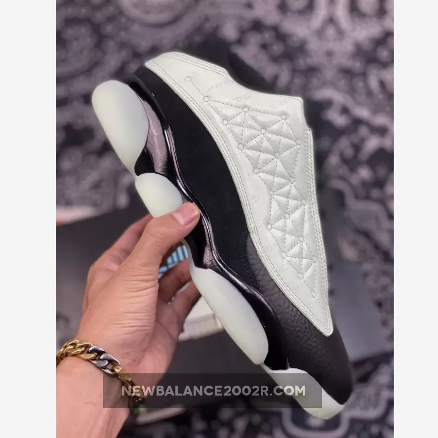 This low-top Air Jordan 13 comes dressed in a Black and Barely Green color combination. Looking closer, the pair has Black tumbled leather on the toe box while Black nubuck covers the heel and collar. Next, Barely Green leather drapes the panels which is highlighted with an embroidered geometric pattern along with ‘Air Jordan 0023’ and ‘1111 Low,’ which also lands on the wrapping paper. Lastly, we have Black on the midsole and Barely Green on the outsole, which could possibly glow in the dark.