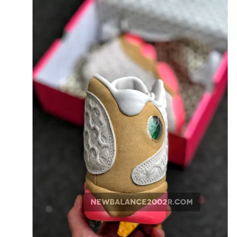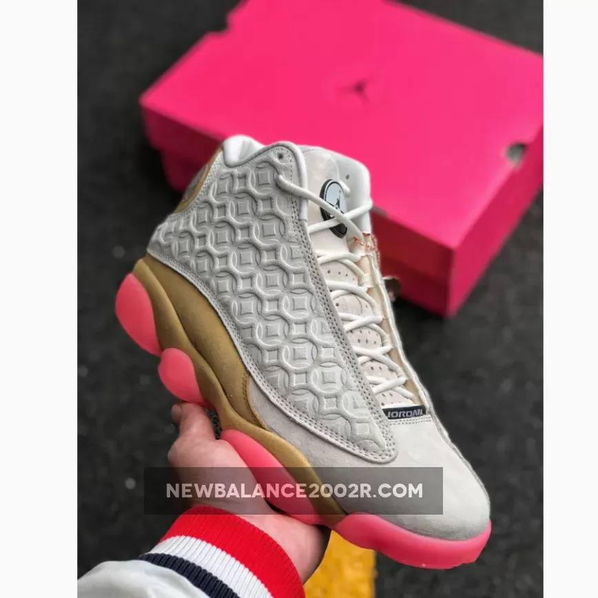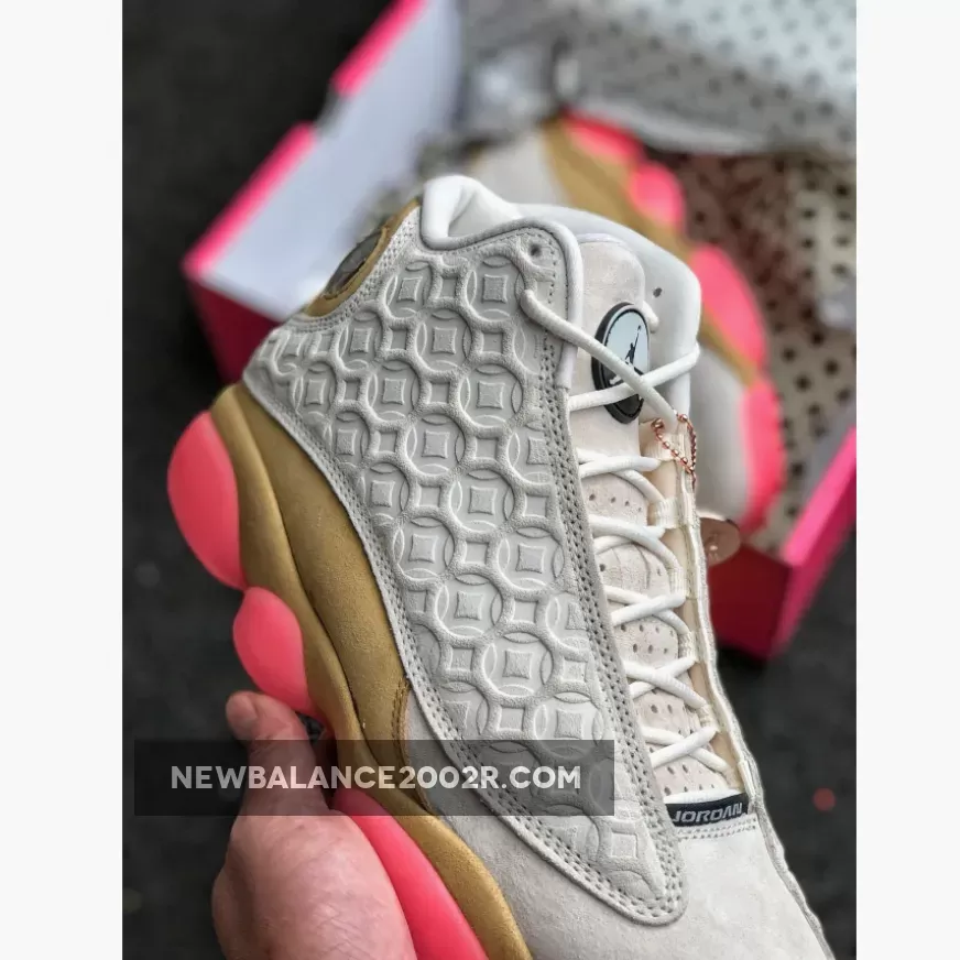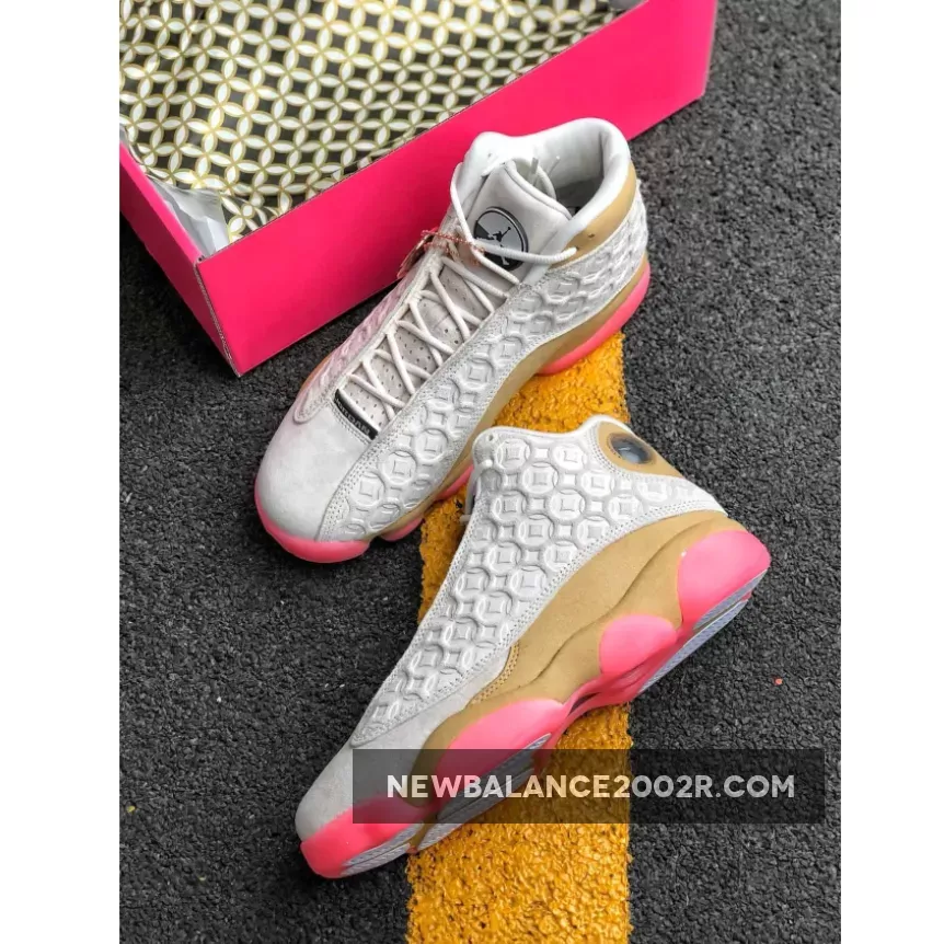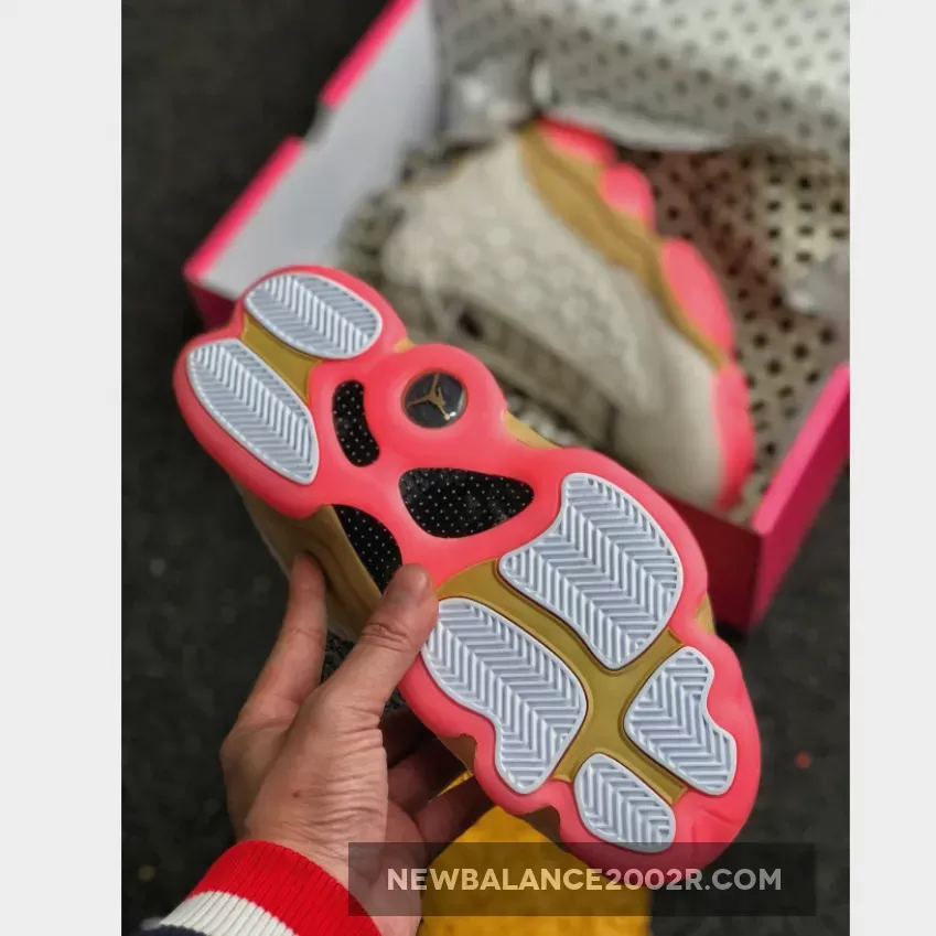 Dressed in a Pale Ivory, Black, Digital Pink, and Club Gold color scheme. This Air Jordan 13 features an Ivory-based upper with special Chinese coin-inspired graphics debossed throughout. Other details includes Gold nubuck overlays atop a matching midsole and Pink rubber outsole.