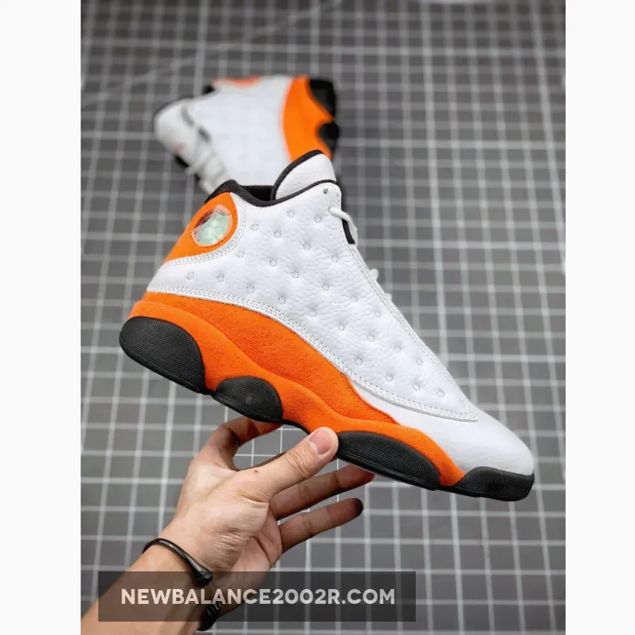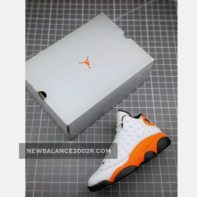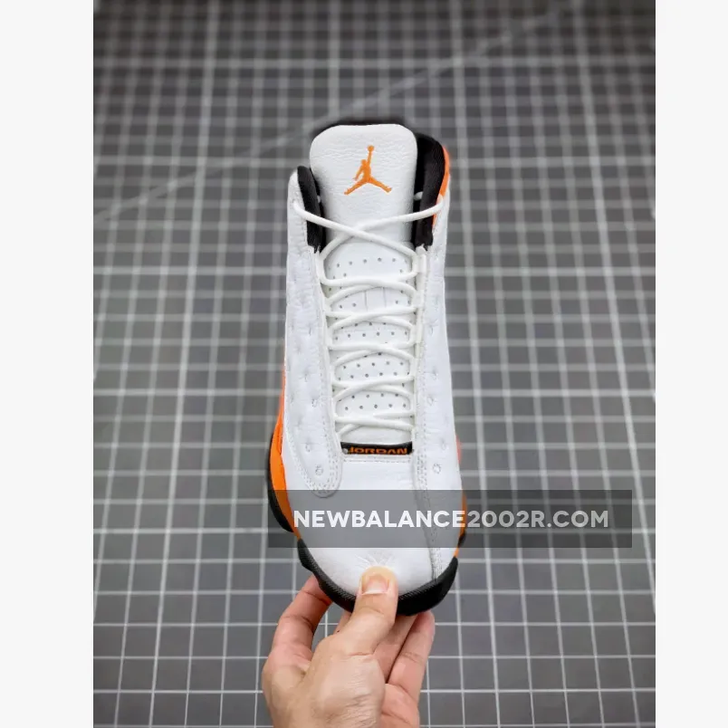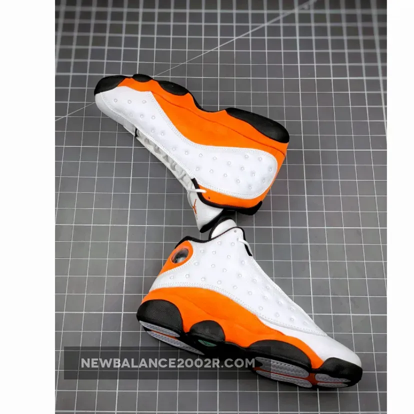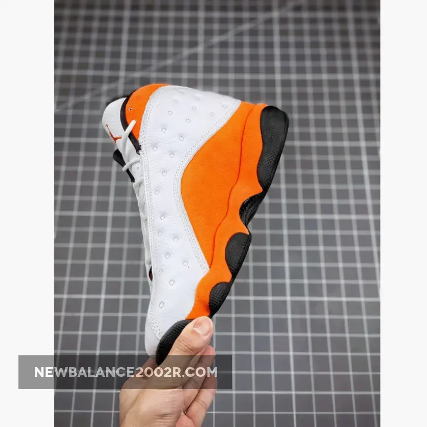 Dressed in a White, Black, and Starfish color scheme. This Air Jordan 13 resembles colors from the “SBB” releases featuring a White upper with Starfish Orange overlays and Jumpman on the tongue completed with a Black rubber sole.