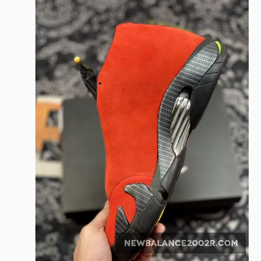 The Air Jordan 14 Retro ‘Ferrari’ features a varsity red suede upper with black and vibrant yellow accents that were inspired by the luxury sports car. The sneaker was originally limited to Chicago retail stores during the August 2014 World Basketball festival.