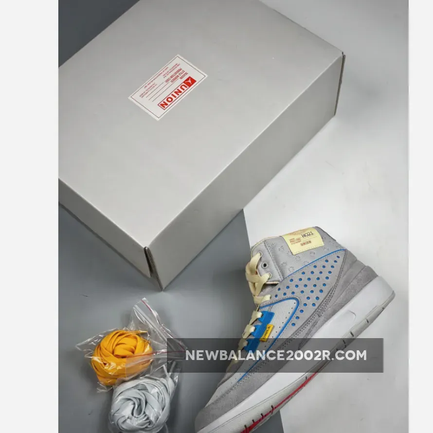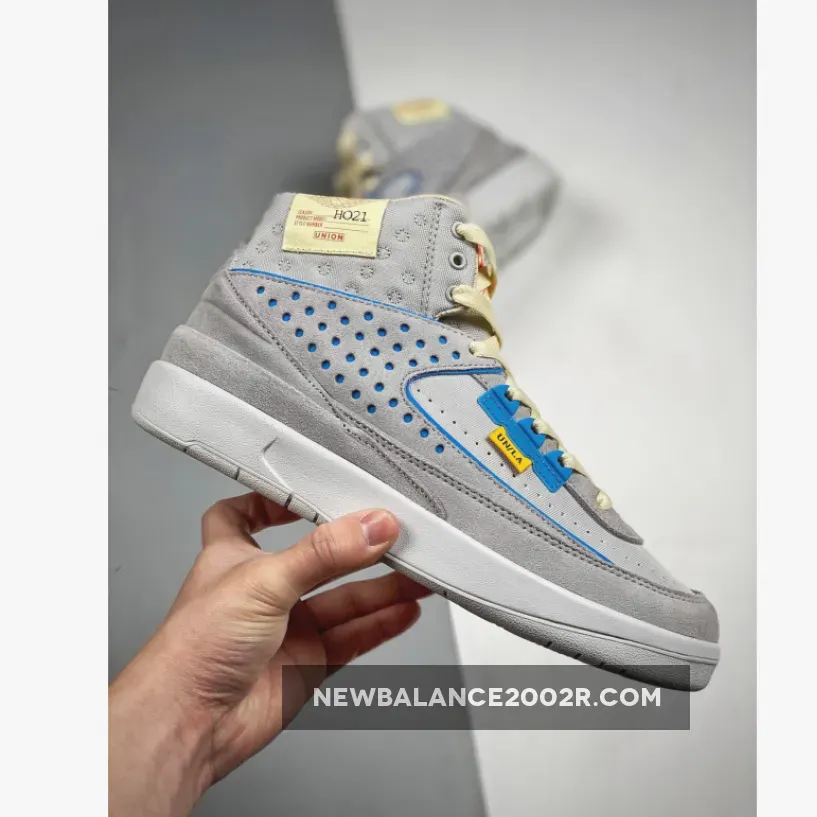 The co-branded Air Jordan 2s arrive in an icy gray-blue colorway with hints of beige and yellow on the laces, insole, and lining. Union branding is present on the tongue, insoles, and sides of the ankle collar. Union’s Air Jordan 2 is dubbed “Gray Fog.”