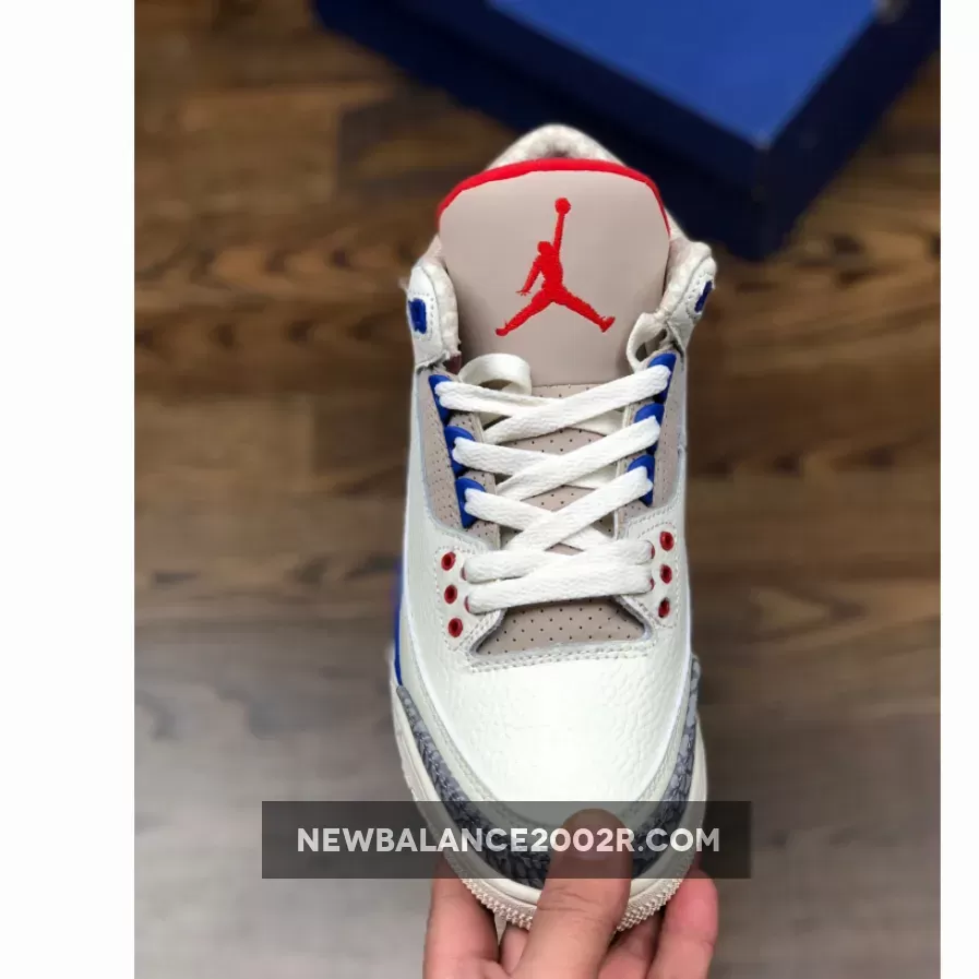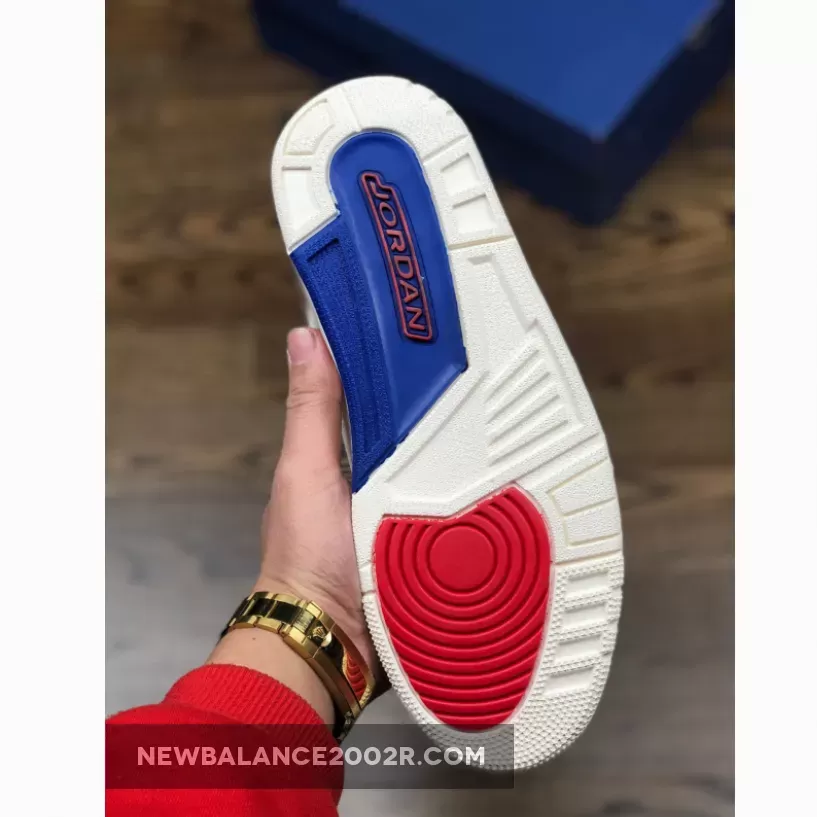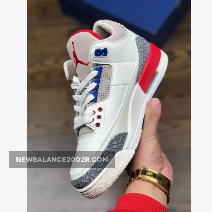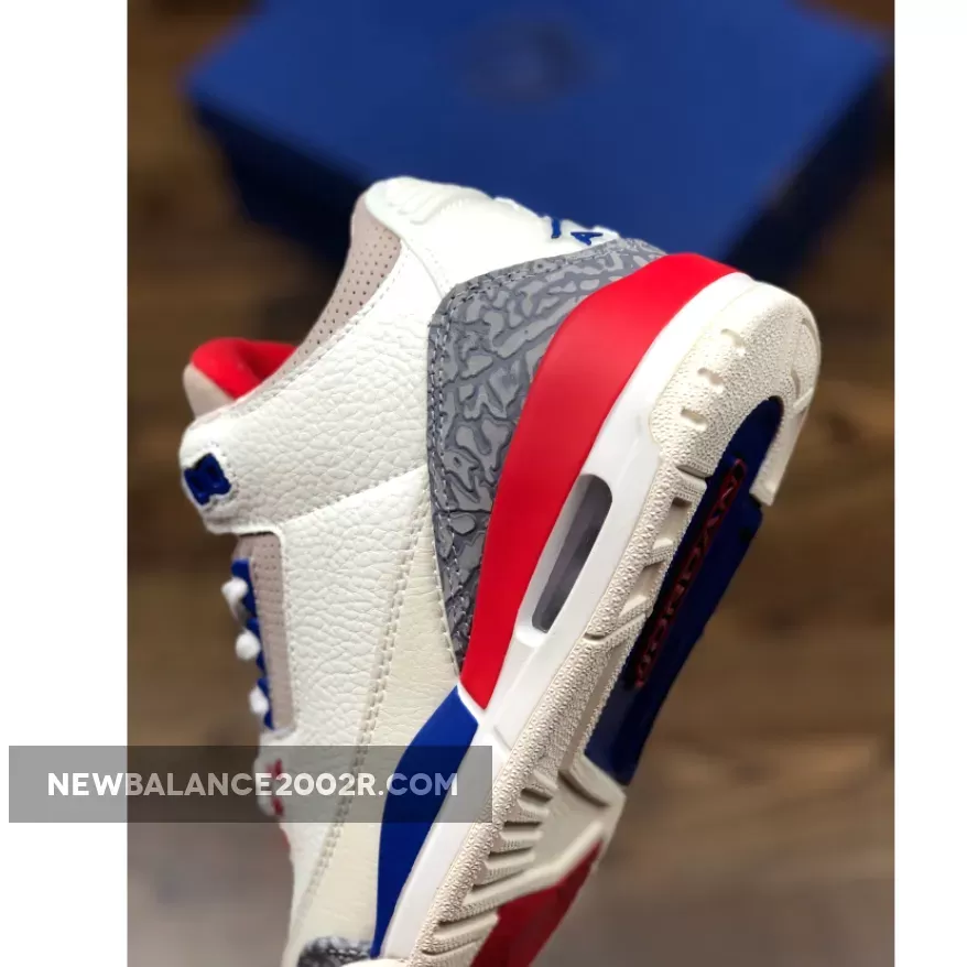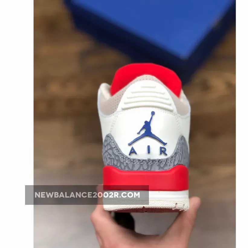 This red, white and blue theme sees a predominantly “Sail” leather upper with hits of “Light Bone” cement detailing at the heel and toe area.