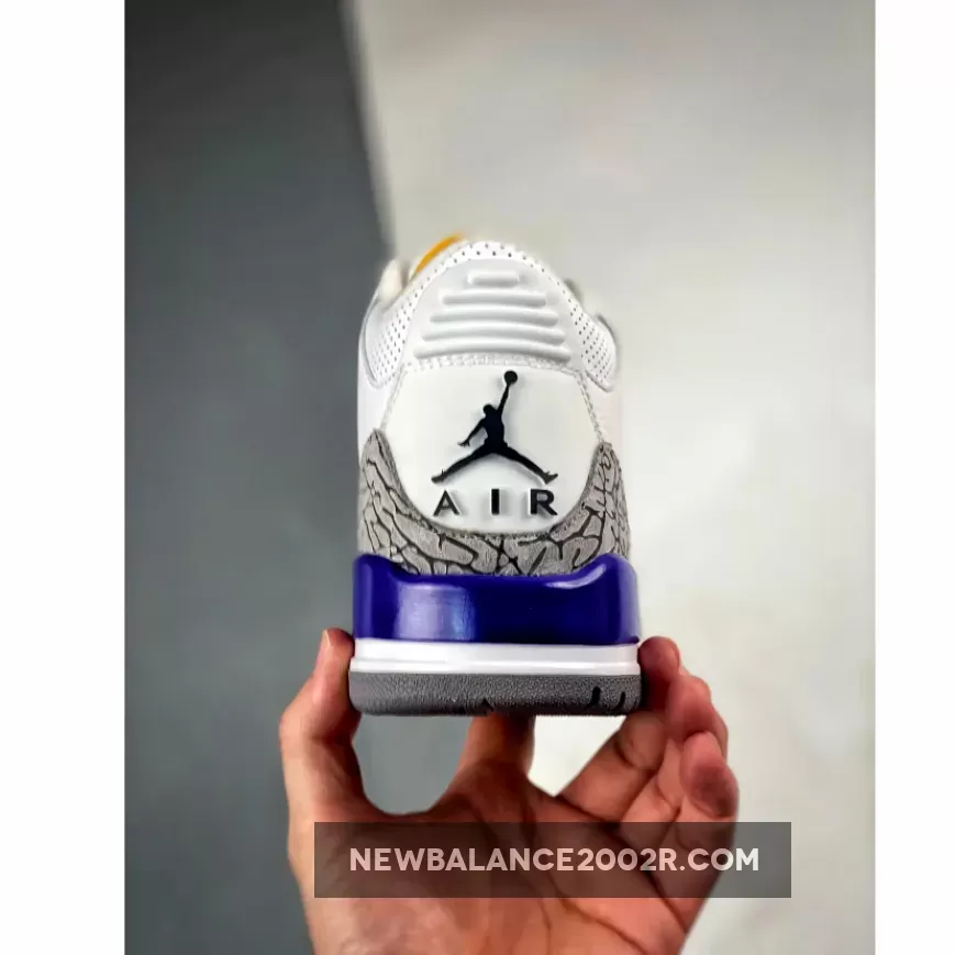 Phenomenal colorway on the Air Jordan 3 Retro Kobe Bryant PE! 🤯 Love the mix of white leather and cement print with the Lakers gold/purple accents. Design is timeless, feels comfy, just need some break-in time. 👍 #AJ3 #KobeBryant #RetroSneakers