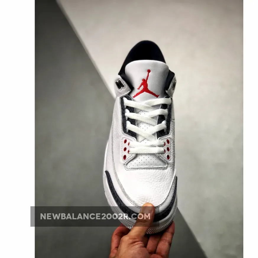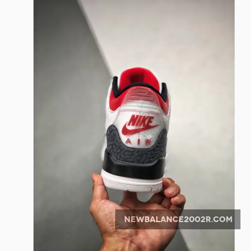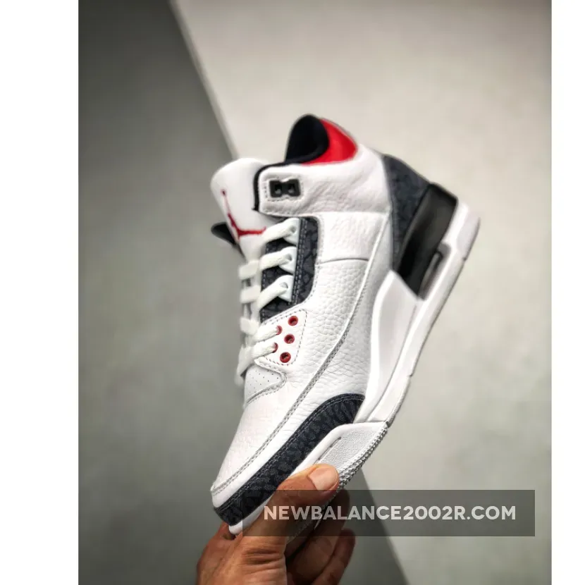 Dressed in a White, Fire Red, and Black color scheme. This Air Jordan 3 features a White leather upper with raw denim-finished elephant print inspired by Japan on the heel, toe and eyestay. The model features a translucent Nike Air and Jumpman heel tabs and comes in special denim elephant-print packaging.