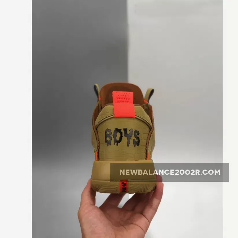 The reflective faux gator material is inspired by Williamson’s play in the Bayou State and by his aggressive playing style, punctuated by the sharp teeth at the base of the tongue.