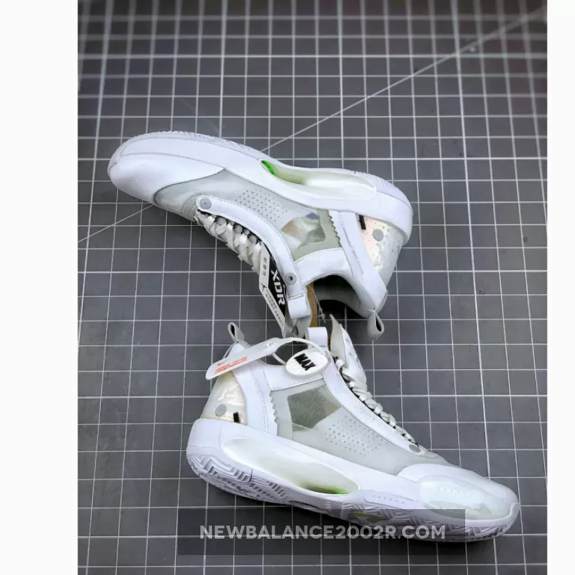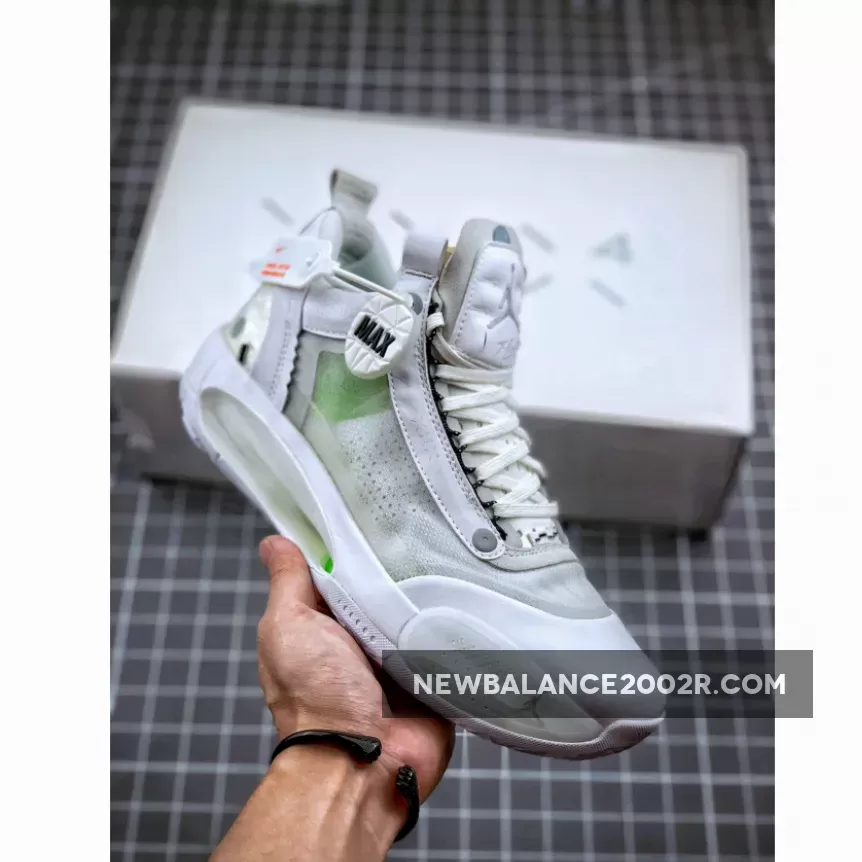 Dressed in a White, Metallic Silver, and Pure Platinum color scheme. This low-top Air Jordan 34 features a crispy White base paired with Silver and Black detailing. Other details includes Bright Green accents to bring a refreshing touch during the hot summer days.