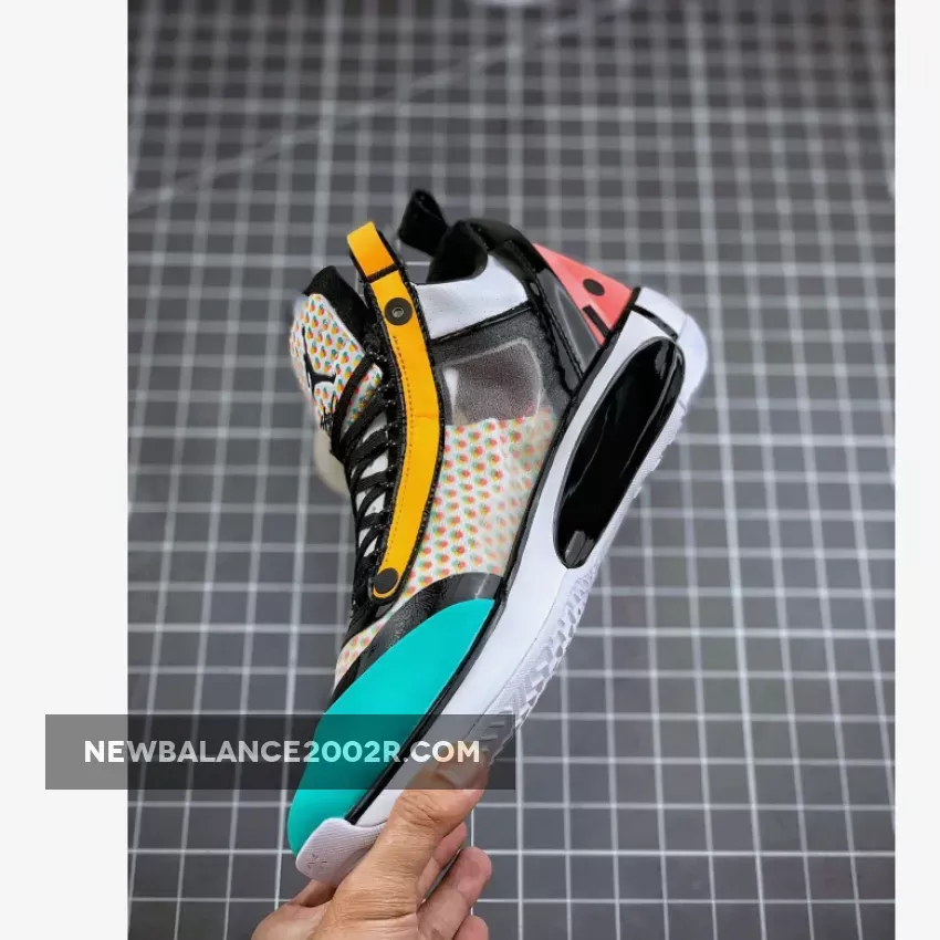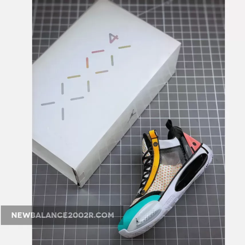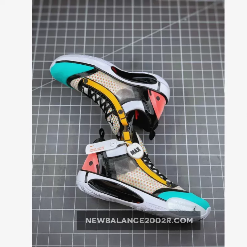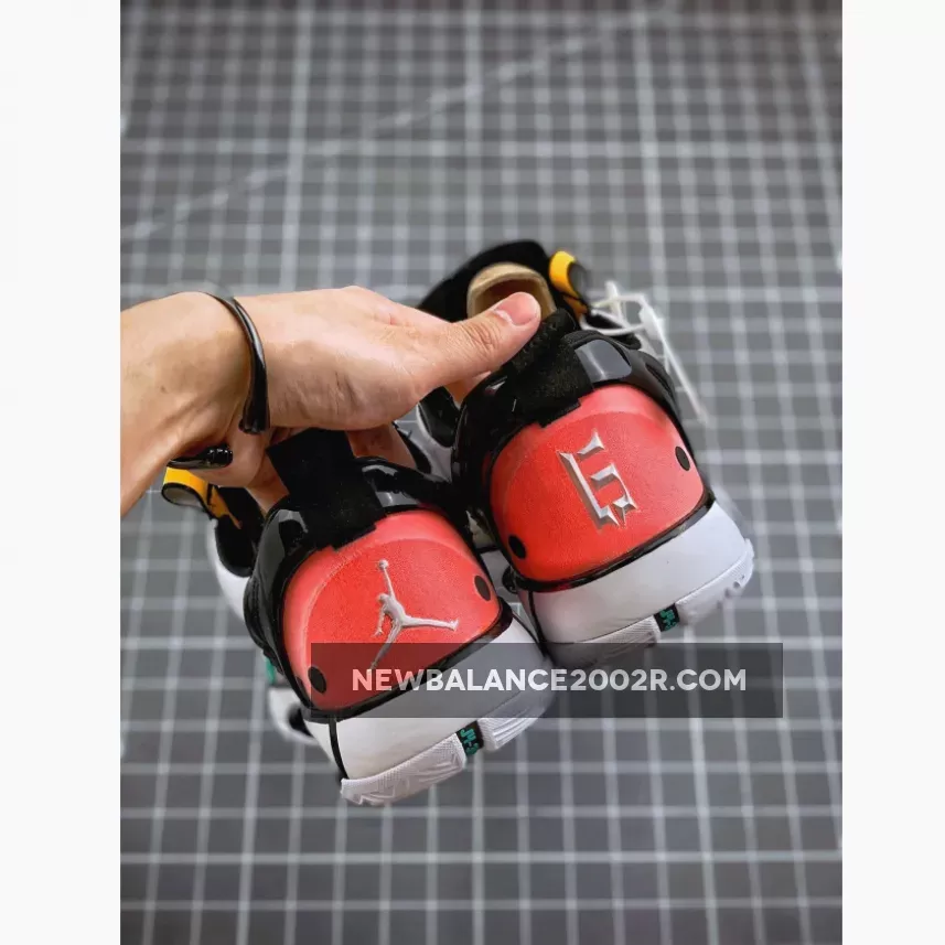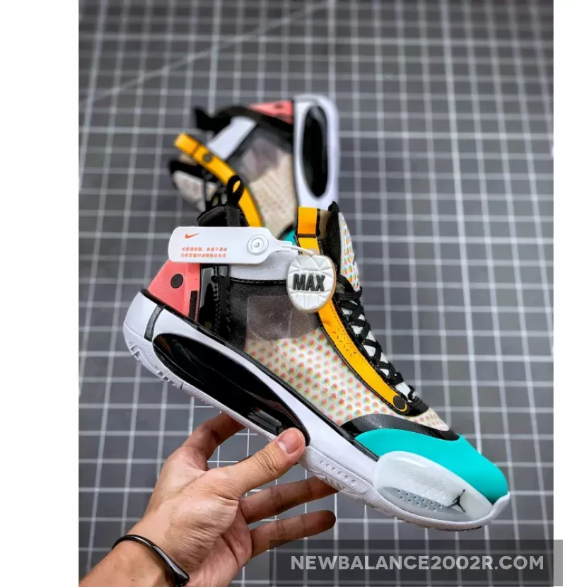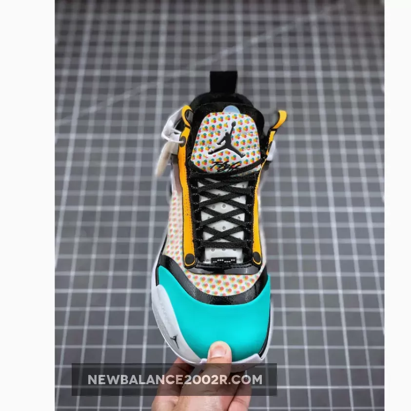 This offering of the low-top Air Jordan XXXIV sports a colorful color blocking with special characters appearing on the inner tongues. Additional details includes Guo’s logo on the right heel in Silver completed with a White rubber sole.