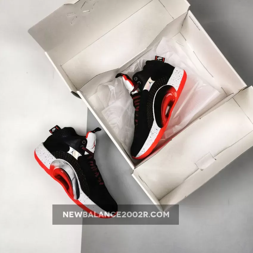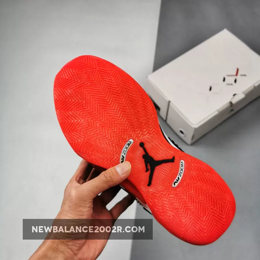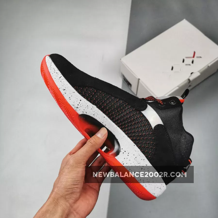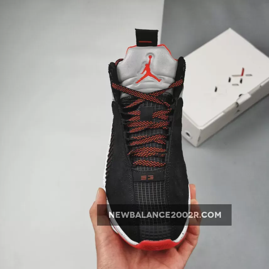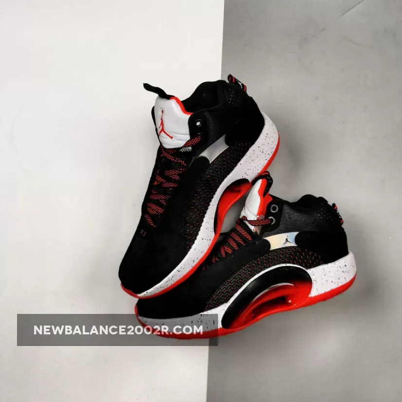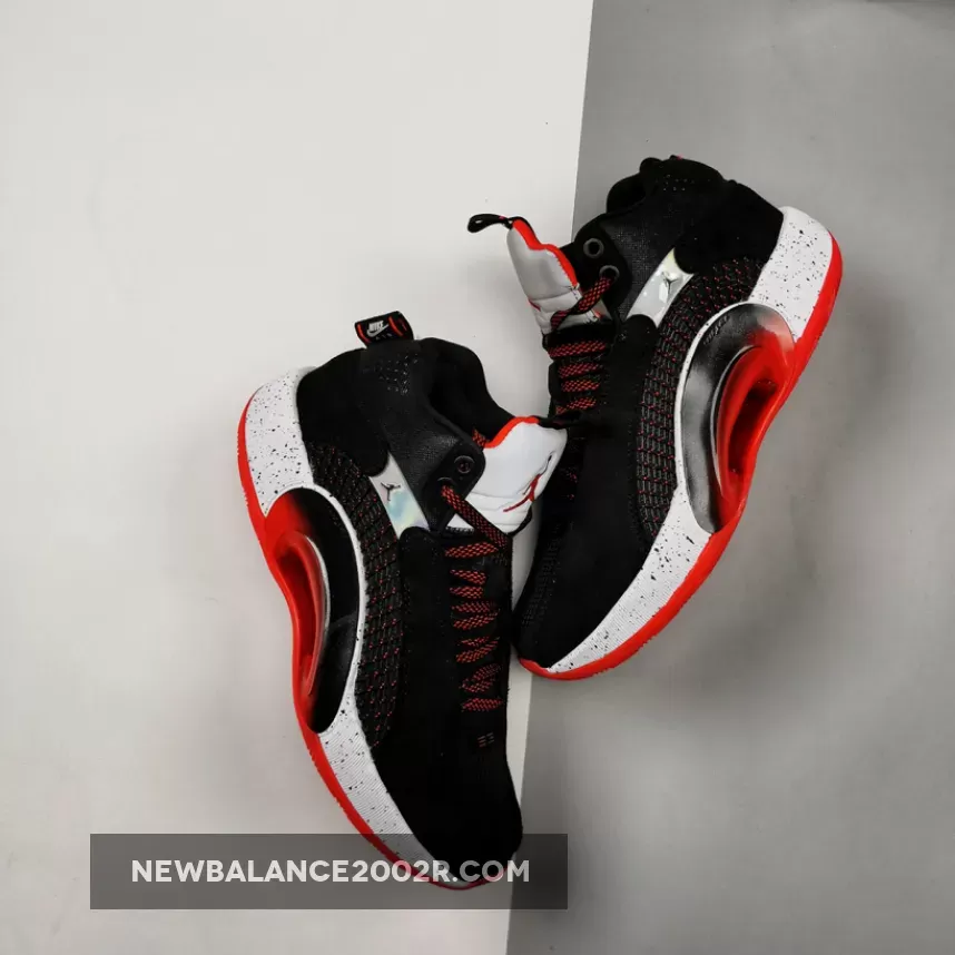 This offering of the Air Jordan XXXV features a Black base with nubuck overlays and reflective tongues. Other details includes iridescent accents, netting side panels atop a White speckled midsole and Red outsole to complete the “Bred” look.