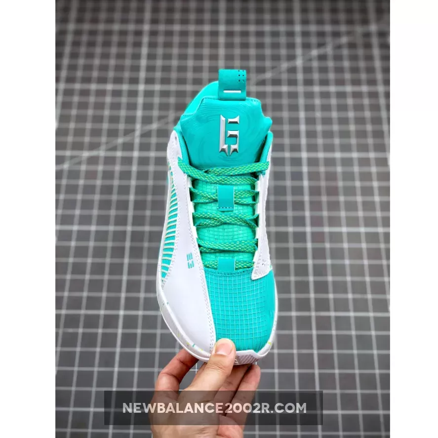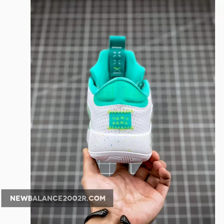 this pair features Jade Green throughout while constructed with mesh. Next, White leather adorns the overlays across the forefoot that extends across the eyelets and around the heel, but with perforations. Following, Volt hits the laces, speckled across the midsole, insoles, and Cantonese characters on the heels. Lastly, Guo’s ‘G’ appears on the right tongue and White runs across the outsole.