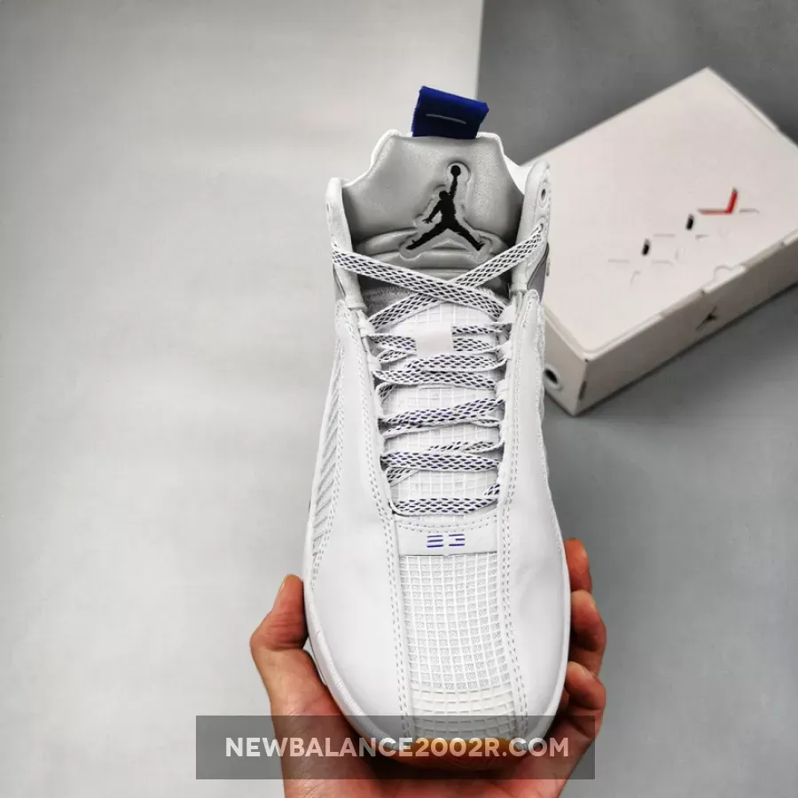 Dressed in a White, Black, Hyper Royal, and Gum Medium Brown color scheme. This Air Jordan XXXV features a White-based upper constructed in a mix of leather and mesh highlighted with iridescent detailing and Royal Blue accents. Silver tongues, “Nike Air” heel tabs, graphic Sisterhood-themed insoles atop a Gum rubber outsole completes the design.