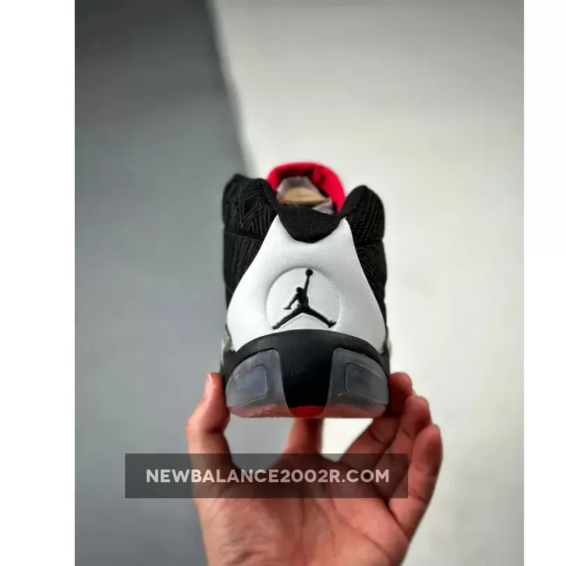 The pair debuts in a mid-top build in a black base with white overlays and black panels. Red accents appear on the tongues and outsoles contrasting its neutral-colored upper. Jumpman insignias appear on the tongues and heels, along with multi-colored and semi-translucent outsoles.