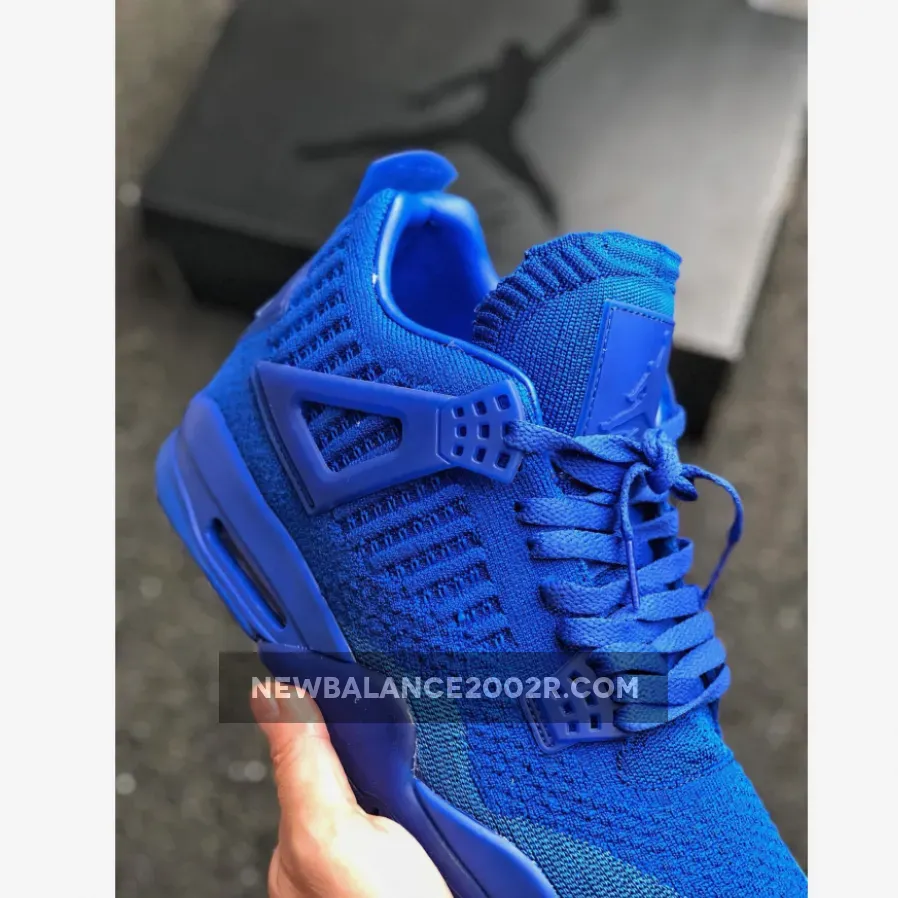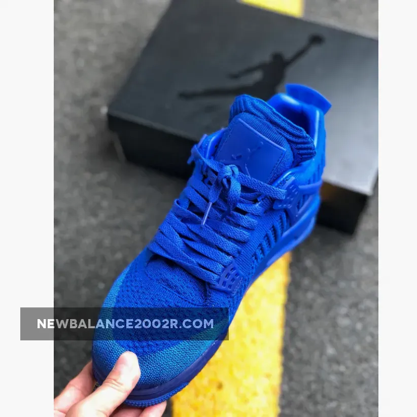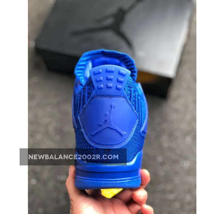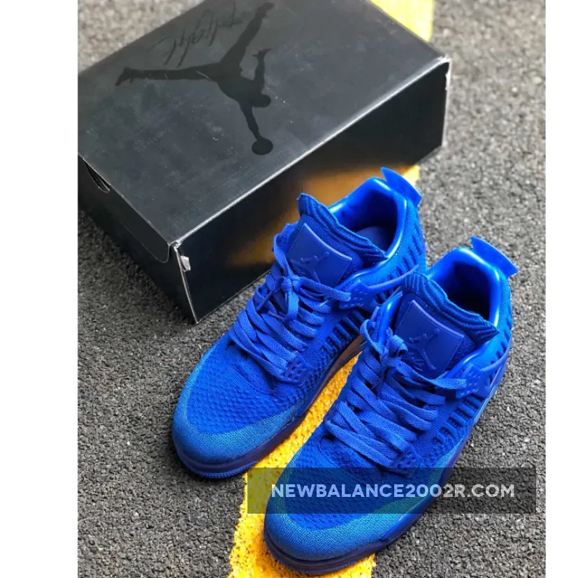 This offering of the shoe arrives in a Hyper Royal and Black color scheme. This Air Jordan 4 comes fully constructed in a Flyknit build, with matching translucent plastic overlays on the wings, tongues, and heels. Tonal Jumpman branding on the tongues and heels completed with a Black Jumpman logo on the insole and outsole.