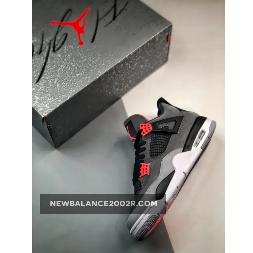 Dressed in a mix of Dark Grey, Infrared 23, Black, and Cement Grey. This Air Jordan 4 will have similarities to 2013’s “Green Glow” release featuring varying shades of Grey throughout its upper constructed in durable nubuck. Black lands on the netting, plastic wings, laces and molded heel tab highlighted with Infrared contrasting accents. A White midsole atop a signature Grey rubber outsole completes the design.