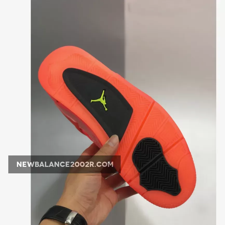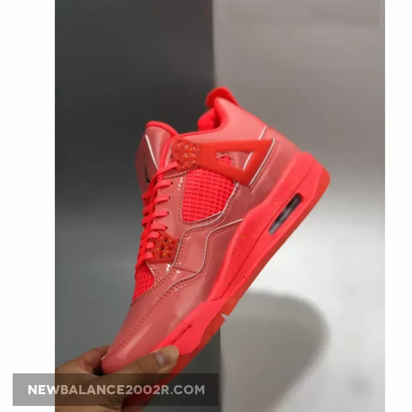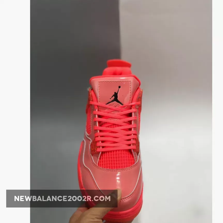 Dressed in a Hot Punch, Black, and Volt color scheme. This Air Jordan 4 features a Pink patent leather upper contrasting with Black detailing throughout.