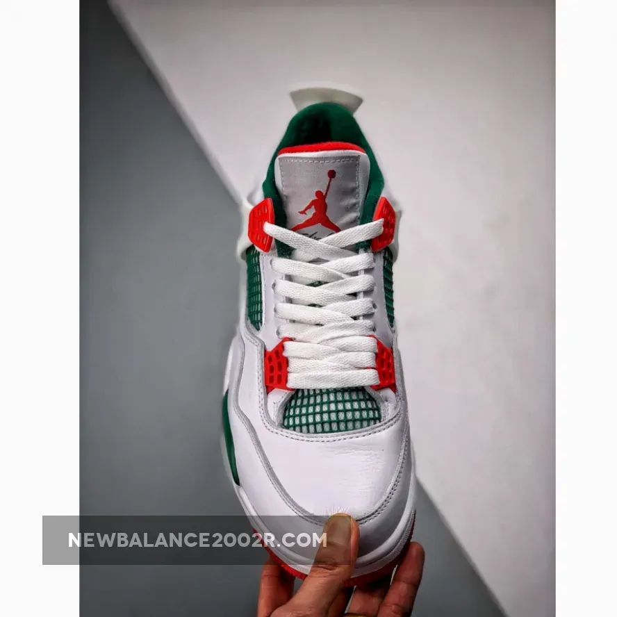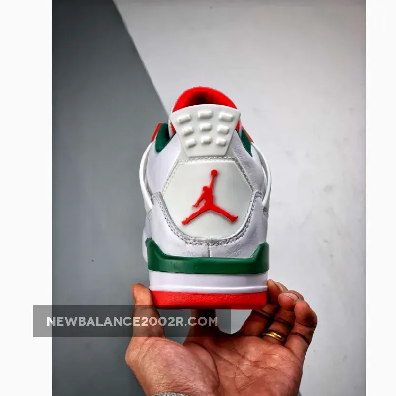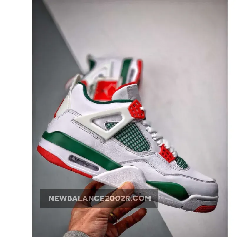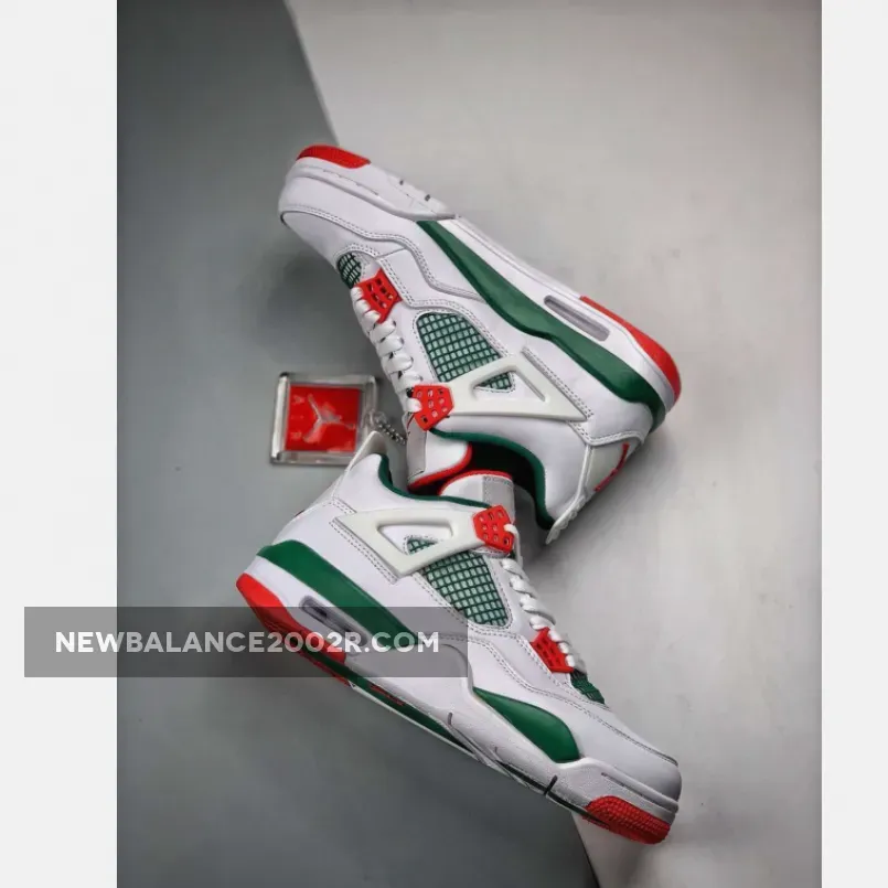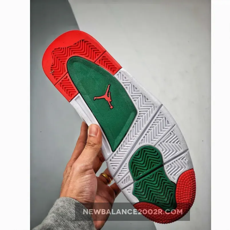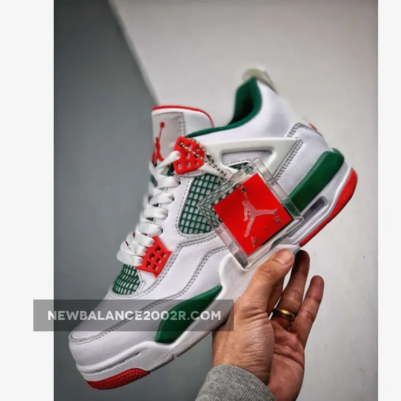 Dressed in a White, Gorge Green, and Varsity Red color scheme. No leaked photos have surfaced, but this Air Jordan 4 is expected to feature a White-based upper with Green and Red contrasting accents.