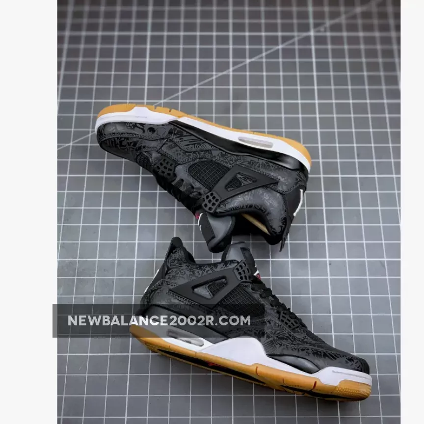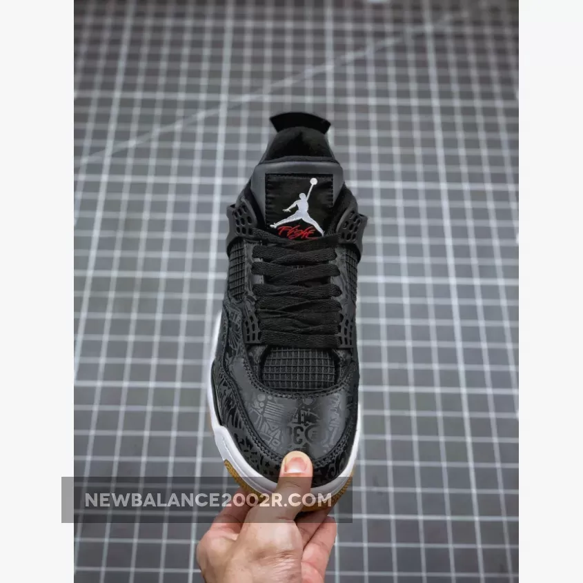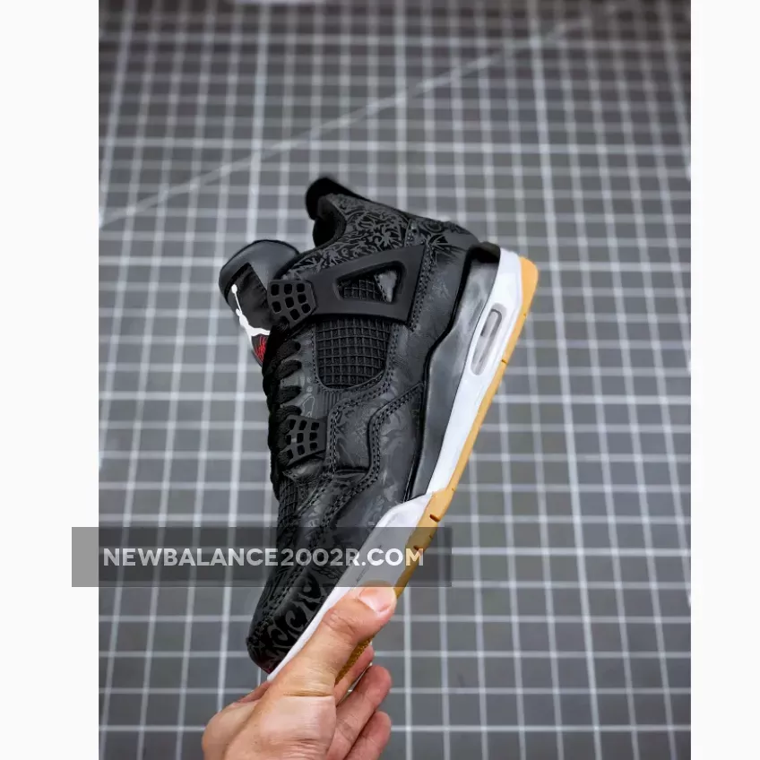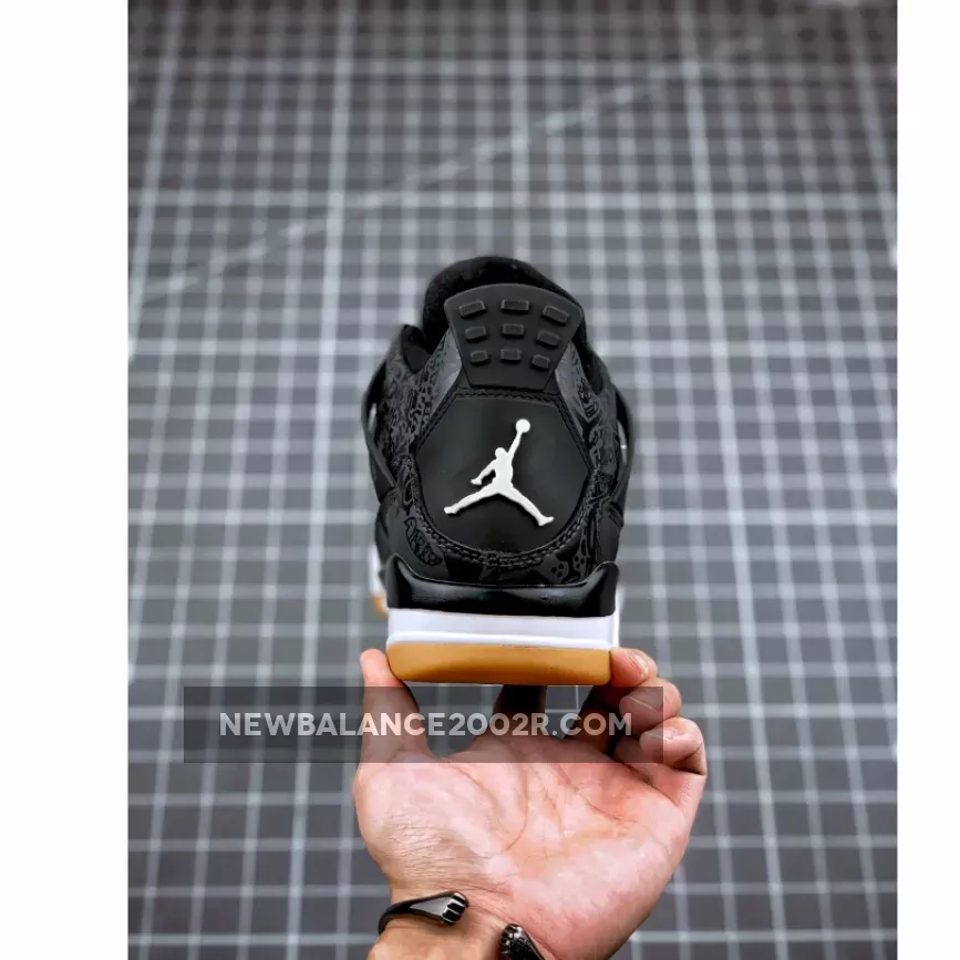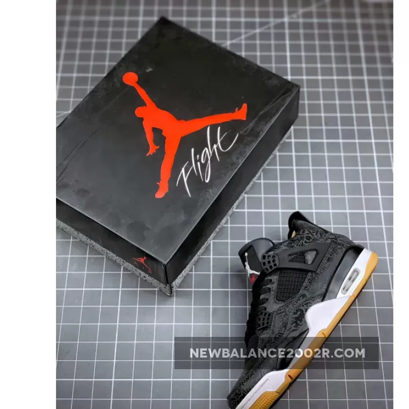 Dressed in a Black, White, and Gum Light Brown color scheme. This Air Jordan 4 features a Black leather upper with 3M laser graphics. Red hits are seen on the “Flight” of the tongue and Jumpman logo on the outsole, while having White Jumpman logos on the tongue label and heel.