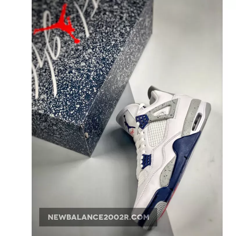 To make comparisons to past releases, the “White Navy” bears a relatively close resemblance to the “White Cement.” But in place of the black accents, this pair incorporates “Midnight Navy” across the very same points: the Jumpman branding, the midsole, and the support wings. Elsewhere, much of the colorway is identical to its inspiration, with white dressing the leather upper, netting, and tongue next to hits of the signature speckled print.