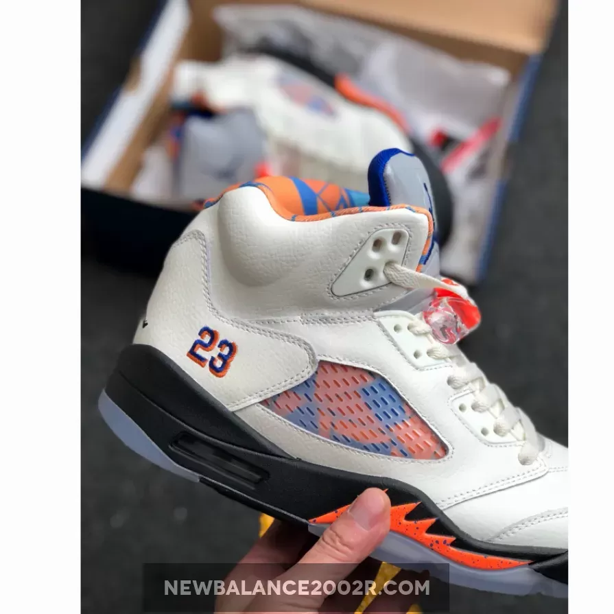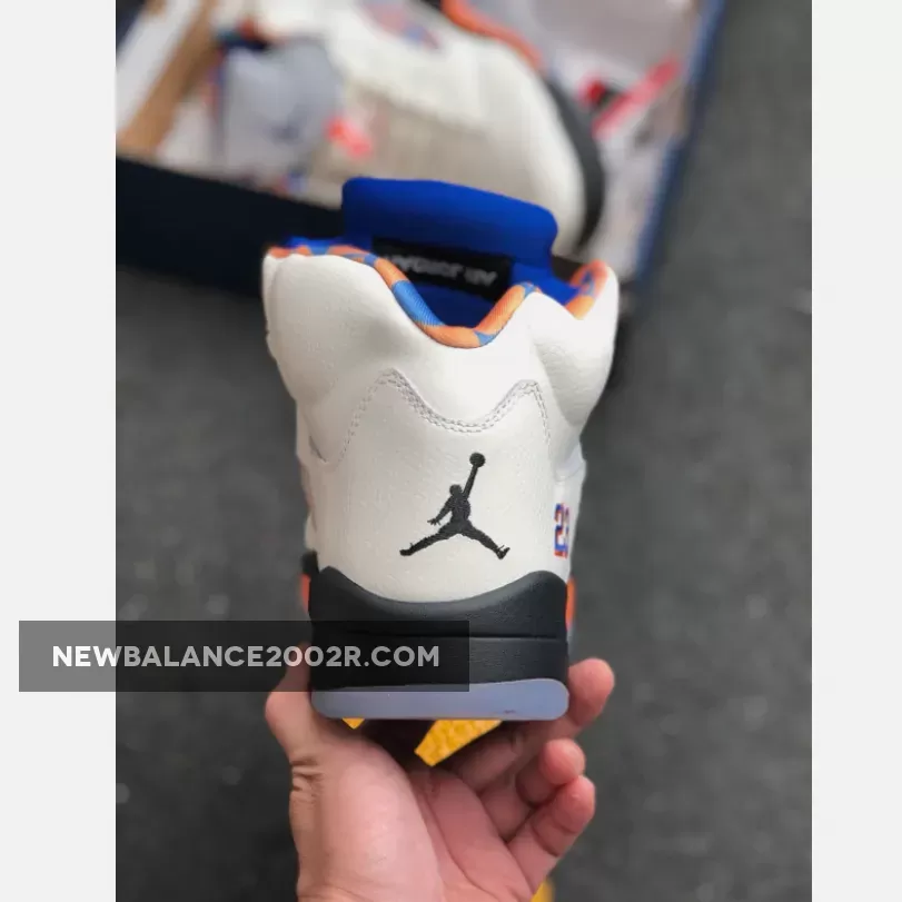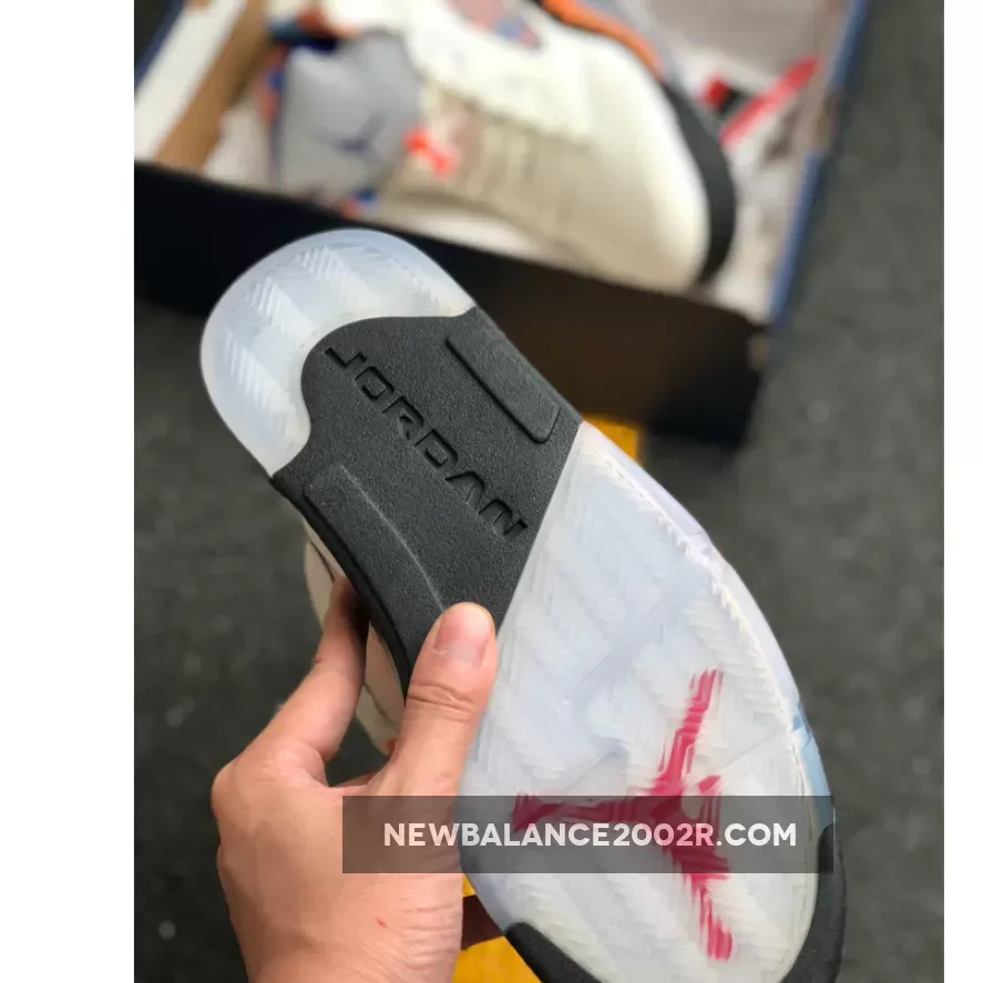 The Air Jordan 5 Retro “Orange Peel,’ aka ‘The International Flight,’ is a tribute to Michael Jordan’s impact on the popularity of basketball around the world. The colorway was specifically inspired by the blue and orange uniforms that Jordan wore for an exhibition game in Barcelona in August 1990 for a Nike Europe promotional tour. The design features a Sail tumbled leather upper accented by a blue and orange pattern based on Barcelona’s iconic street art, visible on the lining and through the quarter panel mesh. The shoe also includes the Jordan 5’s signature 3M reflective tongue, a black midsole with orange shark-tooth detailing and a translucent outsole underfoot.