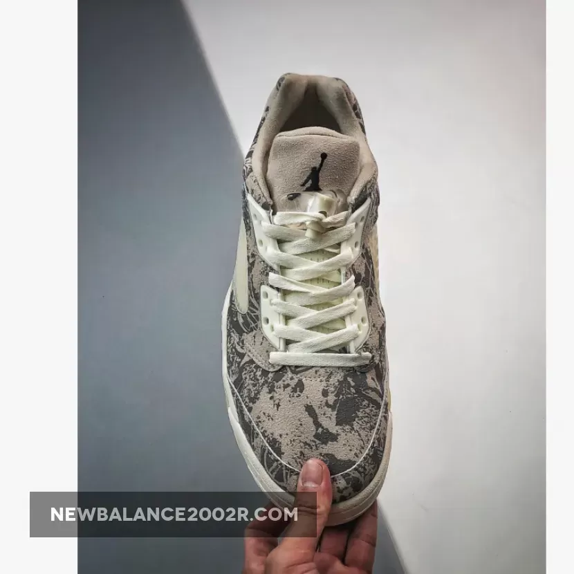 Jumpman branding is seen on the tongue and heel with the quarter panel netting seen in a translucent cream as well. Cream is seen again on the midsole with the P-51 Mustang-inspired teeth seen outlined in silver and a visible Air unit in the heel.