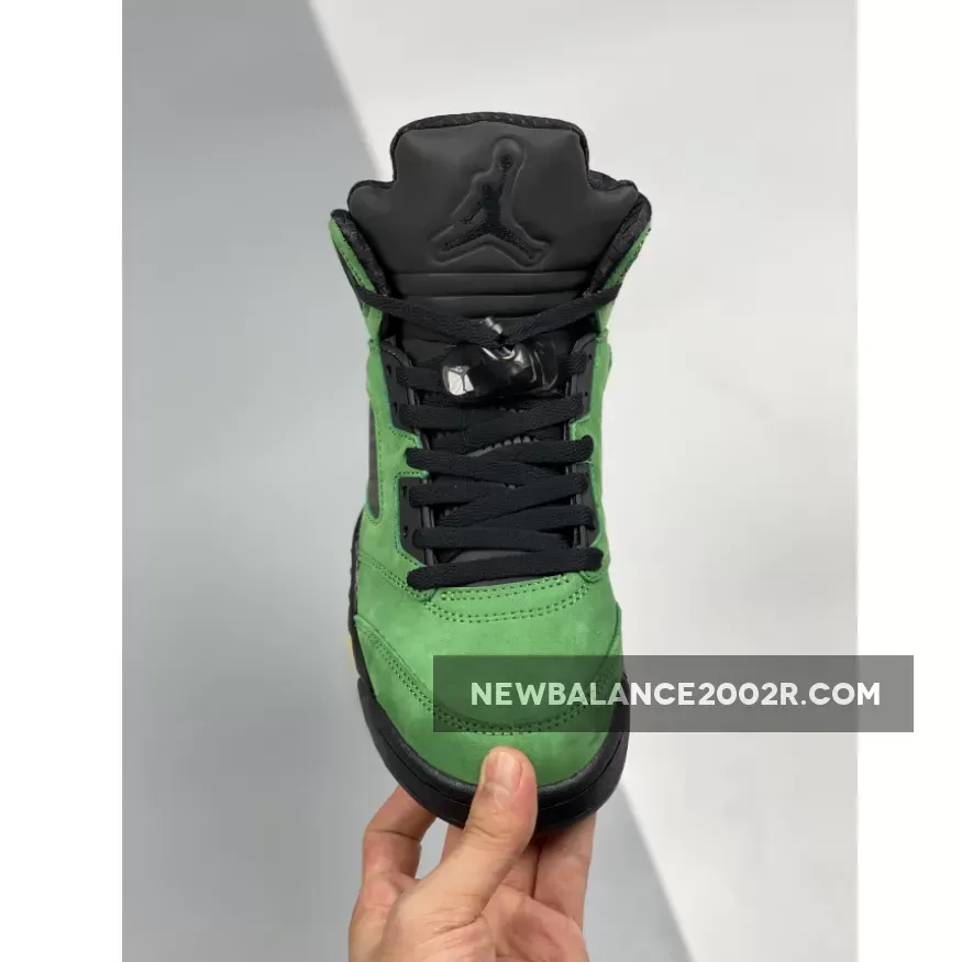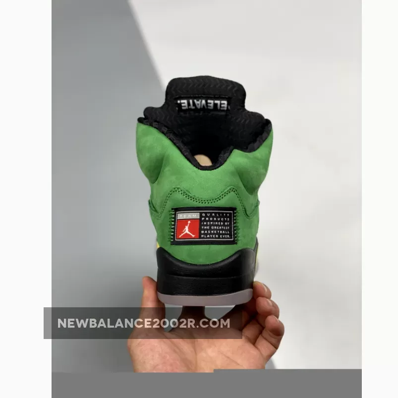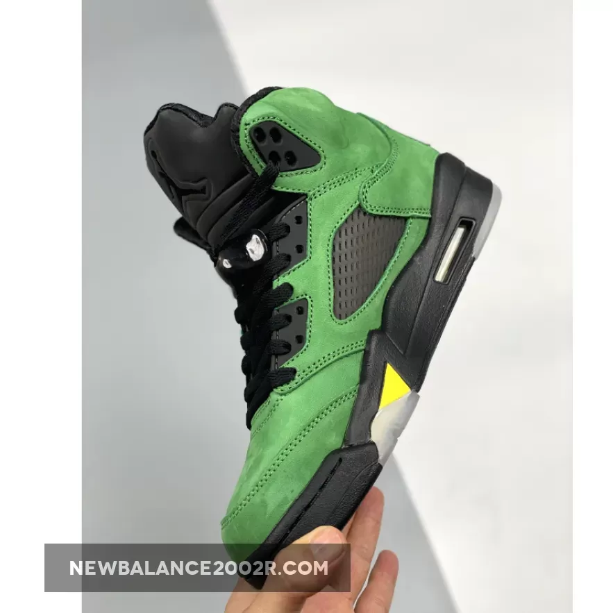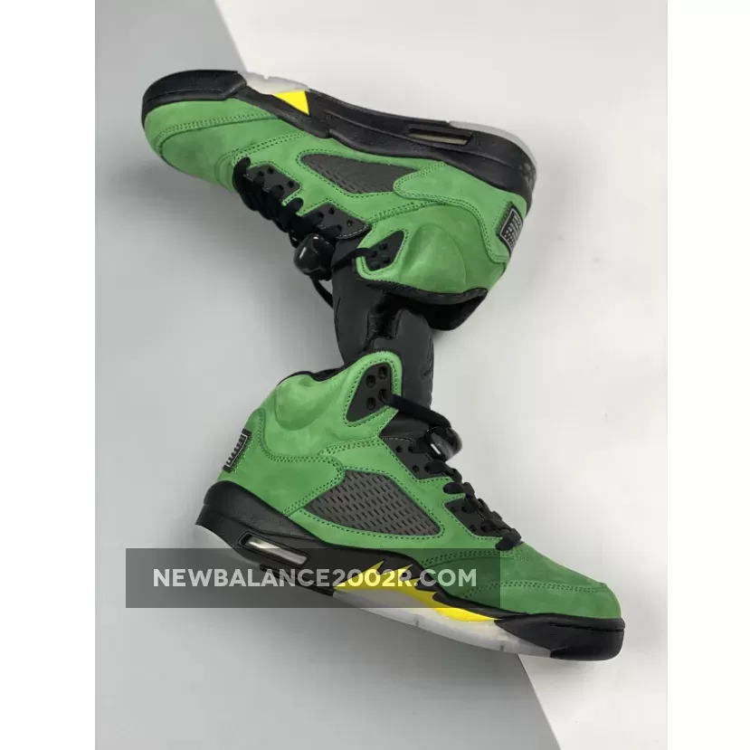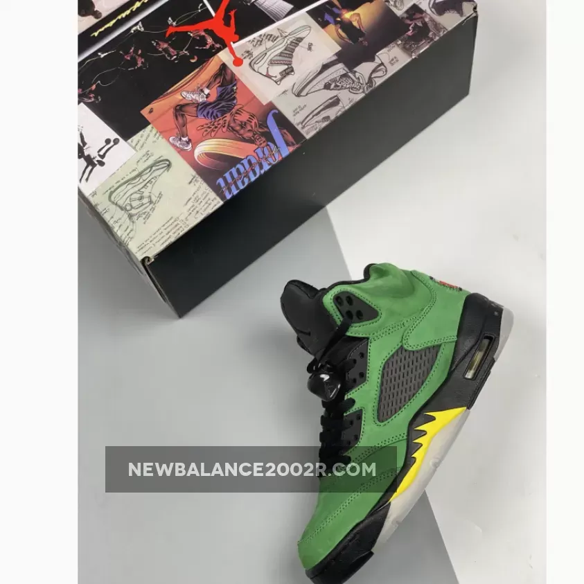 Although images have yet to leak, we were told that this Air Jordan 5 will come dressed in a very similar theme to that of the 2013 PE which comes dressed in Apple Green, Yellow Strike and Black. Green will be used throughout while accents of Yellow and Black will be used. The 2020 won’t feature the Ducks logo on the heel nor the ‘O’ on the tongue. However the heel will have the same patch as the ‘Michigan’ release that features the Jumpman and Team Jordan.