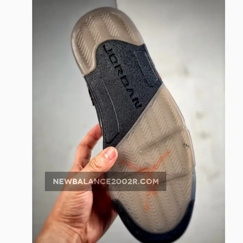 Therefore, the sole is mostly black with flaming orange highlights on the iconic shark teeth, while the upper is mostly black. The rubber outer sole unit of the footwear is finished off elegantly with a combination of black and an extra layer of translucent material that is only slightly see-through.