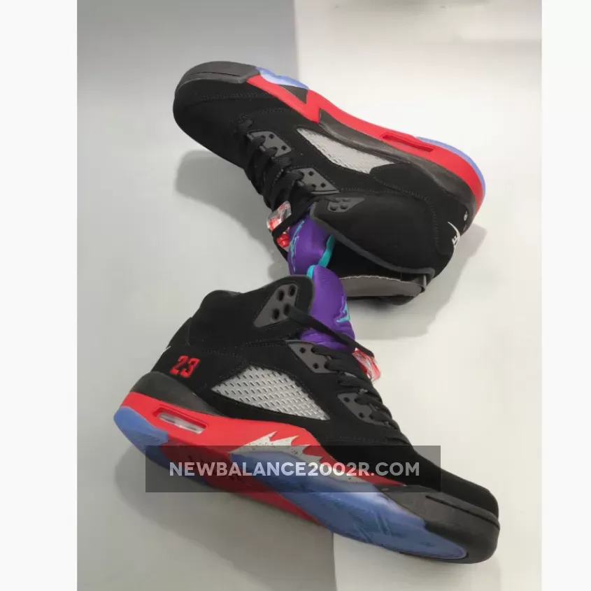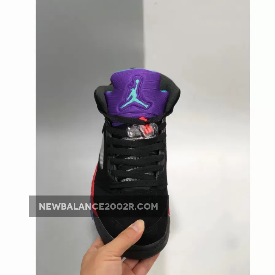 To celebrate the 30th anniversary of the legendary Air Jordan 5, Nike’s Jordan brand have unleashed the Jordan 5 Top 3, and it’s unlike anything else out there. A combination of three of the silhouette’s most classic Air Jordan colorways, if you want a special edition shoe that’s made for collecting then this has your name written all over it.Detailed look from above, the shoe is decked out in leather, nubuck, and suede, the stealthy black upper is taken straight from the “Black Metallic” colorway, while the white, green, and purple accents that are found on the tongue are reminiscent of the “Grape” that is arguably one of the most famous Jumpman shades to date. Rounding it all off is the number “23” at the laterals, and the “Nike Air Jordan” logo embroidered across the heel portion, just like the OG from the 1990s.RELEASE UPDATE: The Jordan 5 Top 3 is releasing on June 13th 2020 with a retail price tag of 155.