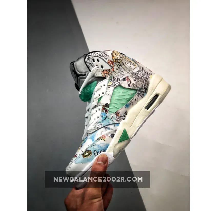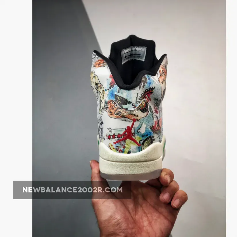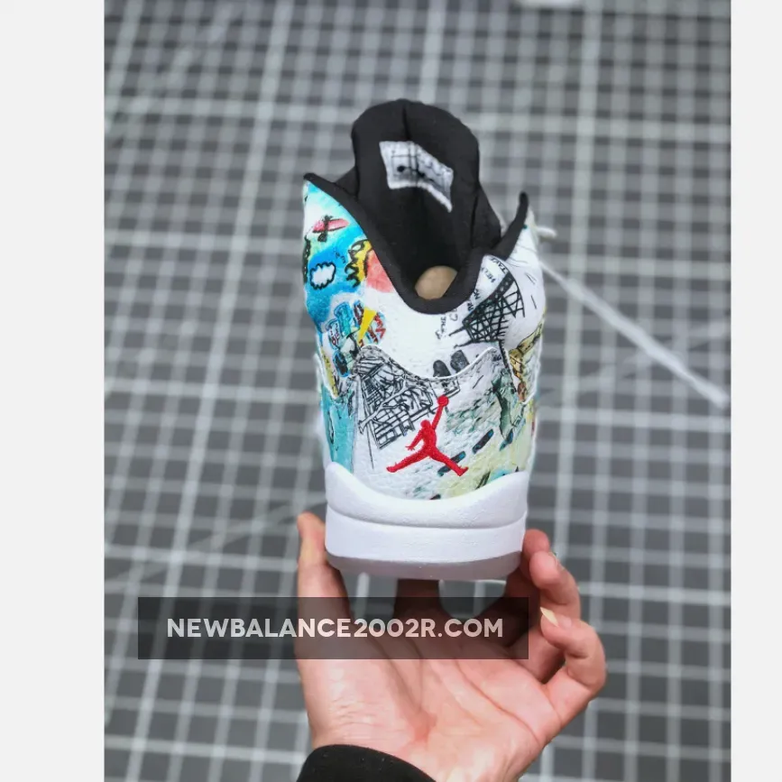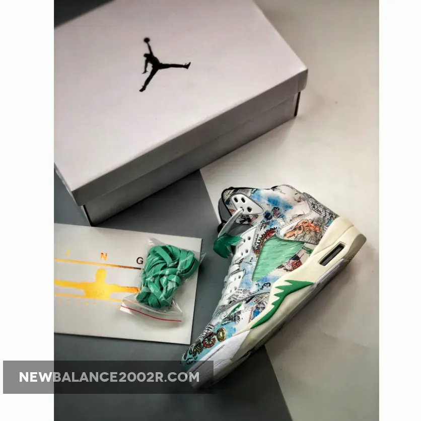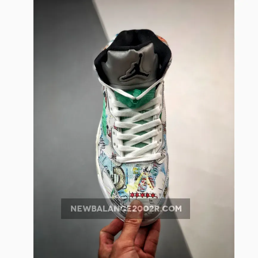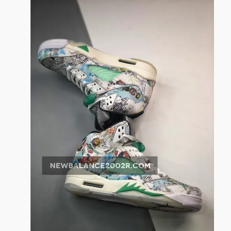 This Air Jordan 5 comes highlighted with a White leather upper while an all over unique graphic overlay is seen that pays tribute to Chicago and its neighborhood. Following we have the lace lock which comes in the shape of Wings, Wings label on the inside of the tongue, a Red Jumpman logo on the heel while an icy translucent outsole completes the look.