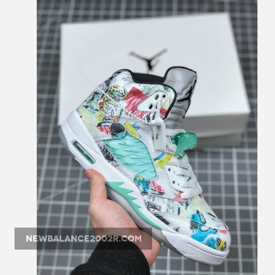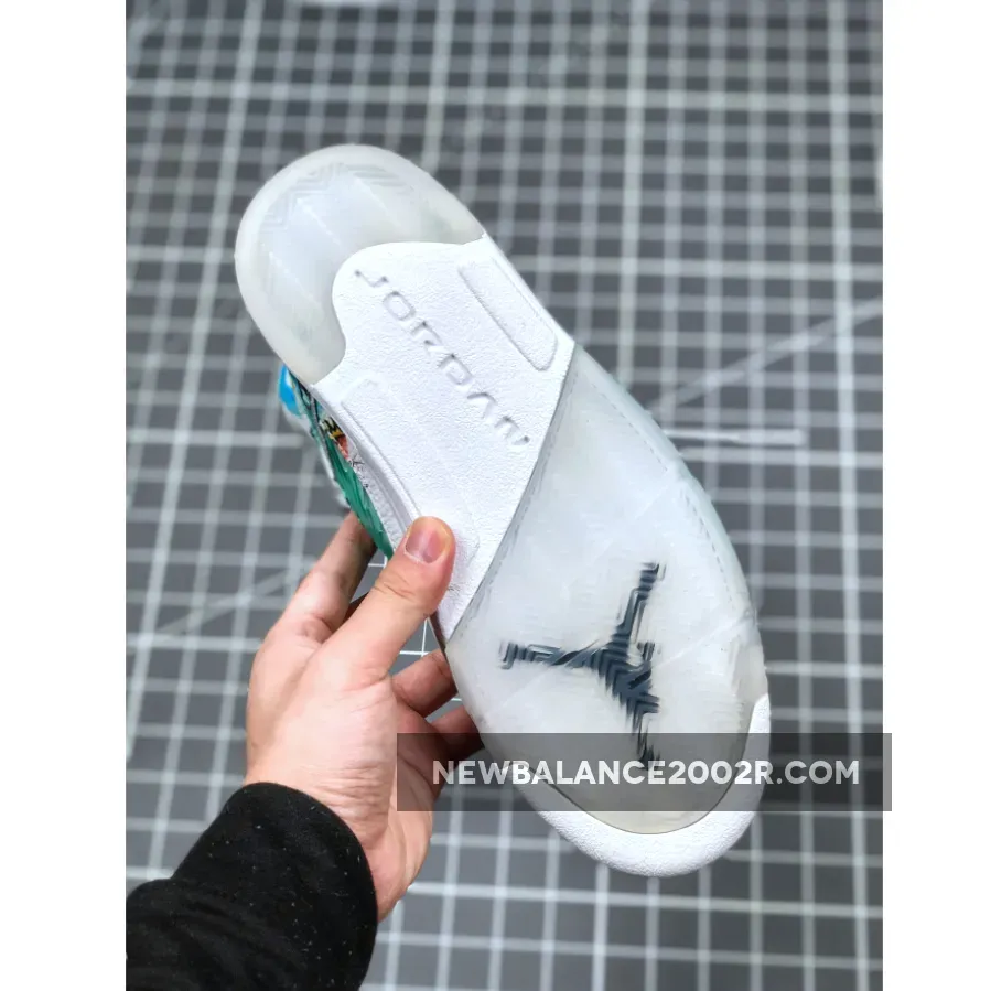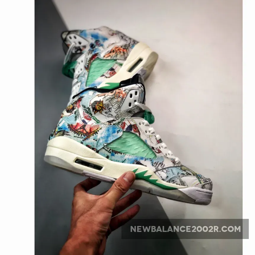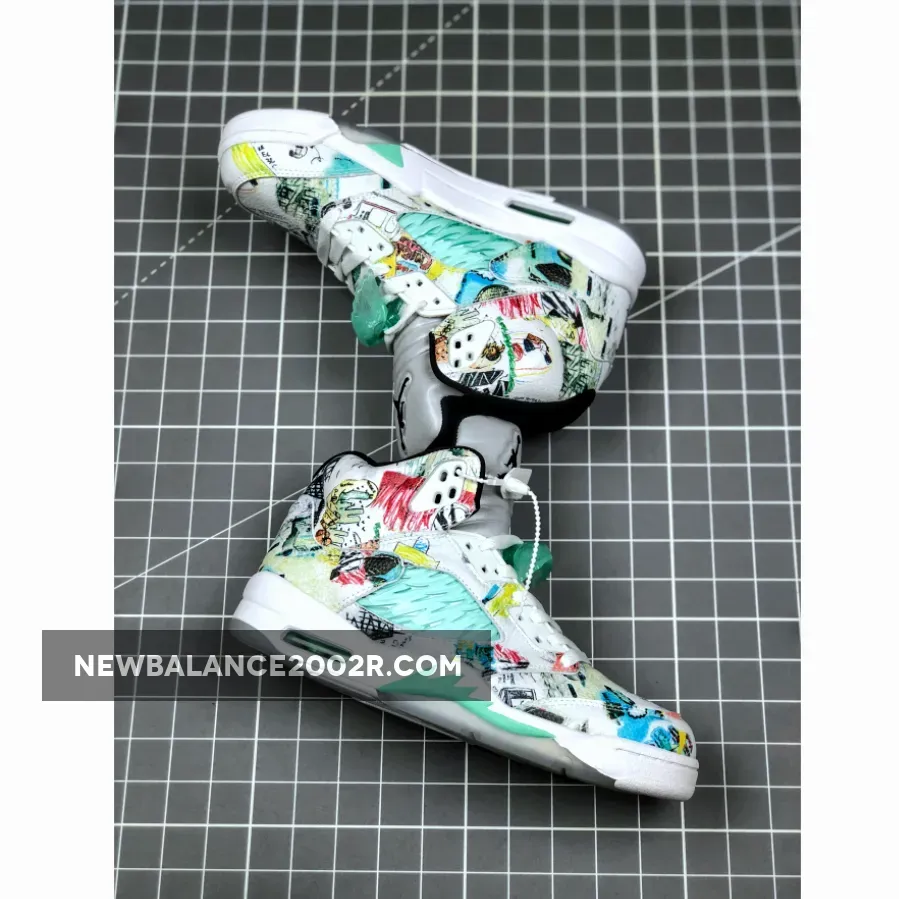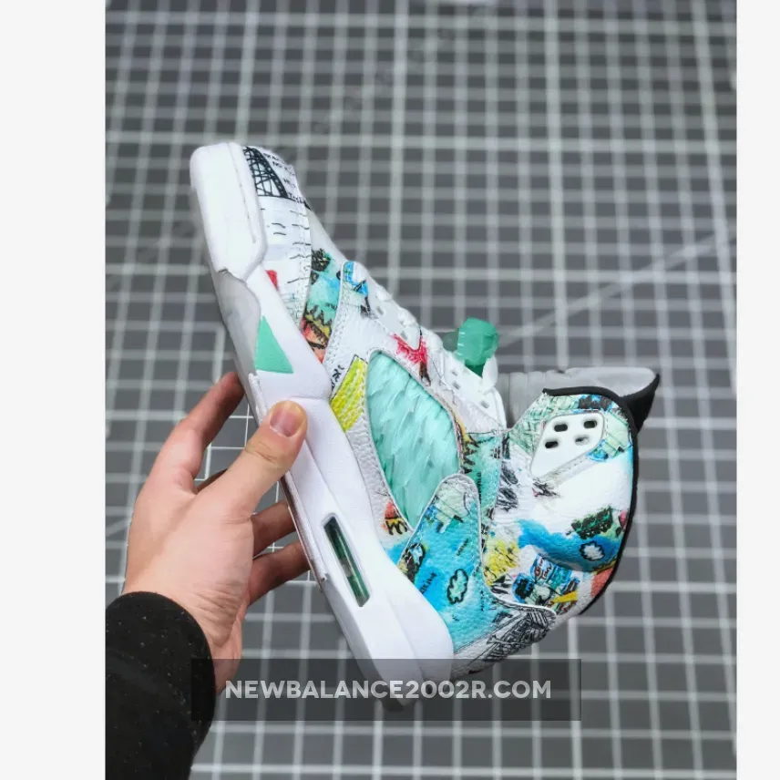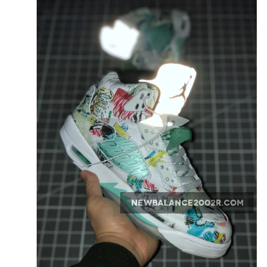 This Air Jordan 5 comes highlighted with a White leather upper while an all over unique graphic overlay is seen that pays tribute to Chicago and its neighborhood. Following we have the lace lock which comes in the shape of Wings, Wings label on the inside of the tongue, a Red Jumpman logo on the heel while an icy translucent outsole completes the look.
