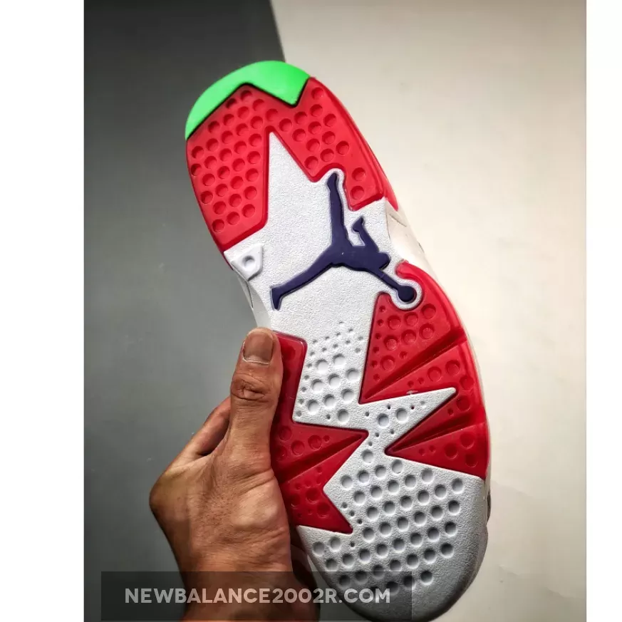To celebrate the release of the Space Jam 2 sequel starring none other than LeBron James himself, Nike are revisiting an iconic colourway with the upcoming Jordan 6 Hare White. Inspired by Bugs Bunny himself, this shoe is the perfect homage to both a legendary movie franchise and an iconic silhouette, and here’s everything that you need to know.Featuring an ultra premium tumbled leather construction, the Hare is painted in a grey and white colour palette as a reference to the beloved cartoon character’s fur coat. Vivid red accents grace the throat for a striking pop of contrast, while a rubberised multicoloured tongue adds even more colour to the otherwise muted AJ6.