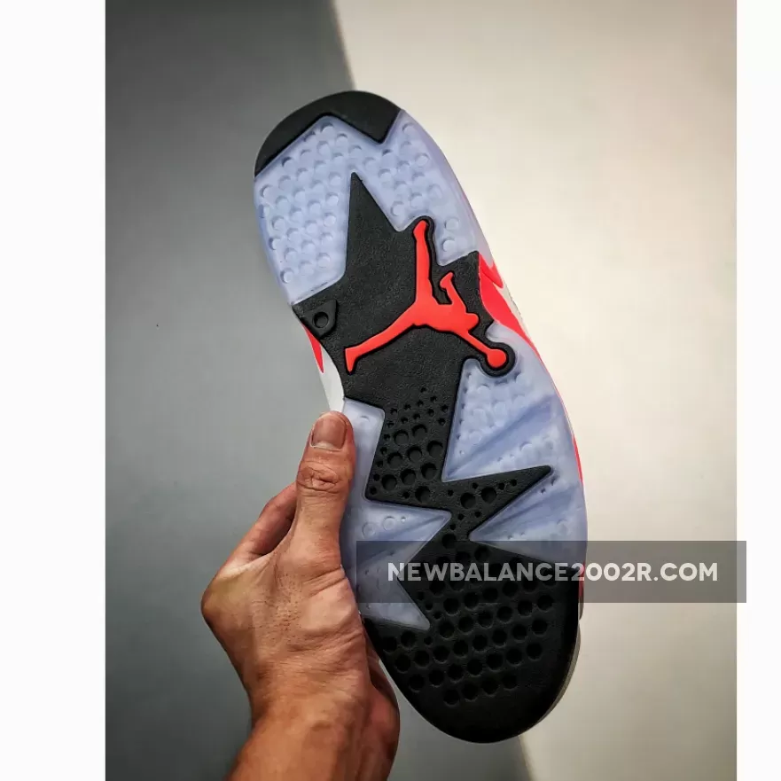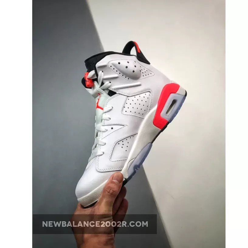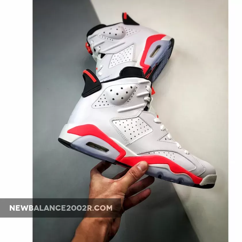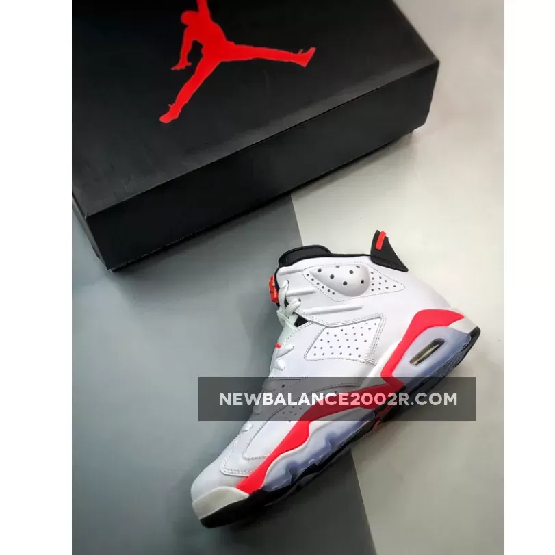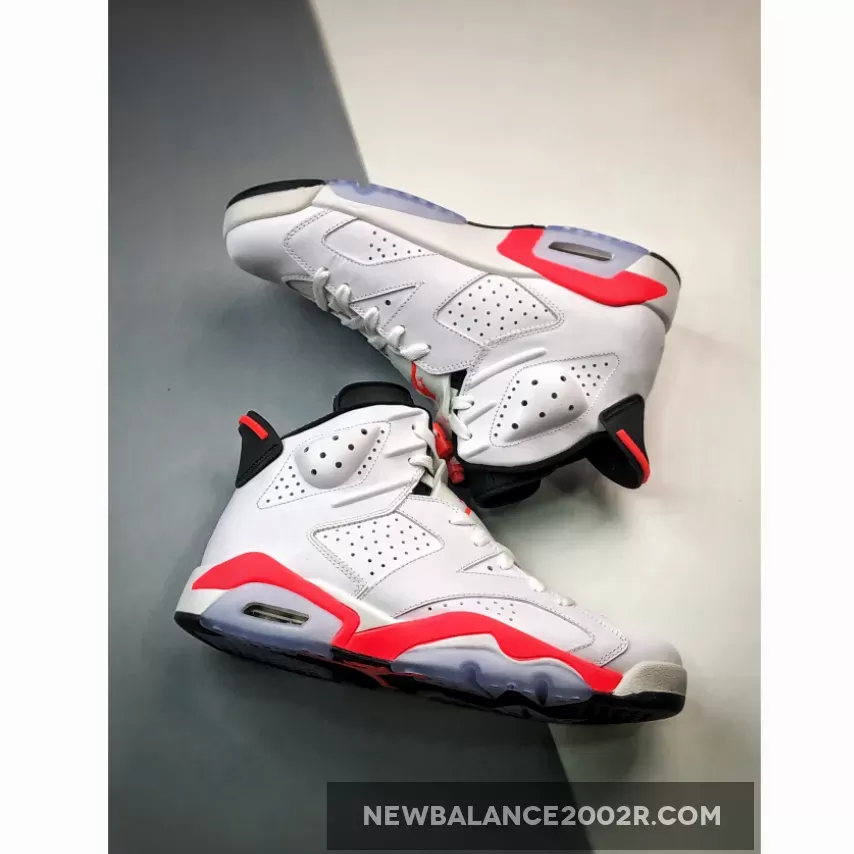 Solid color combo. Premium leather upper with vibrant infrared accents & black detailing. Classic silhouette with modern touches. Perfect for daily rotation. #AirJordan6 #Retro #WhiteInfrared