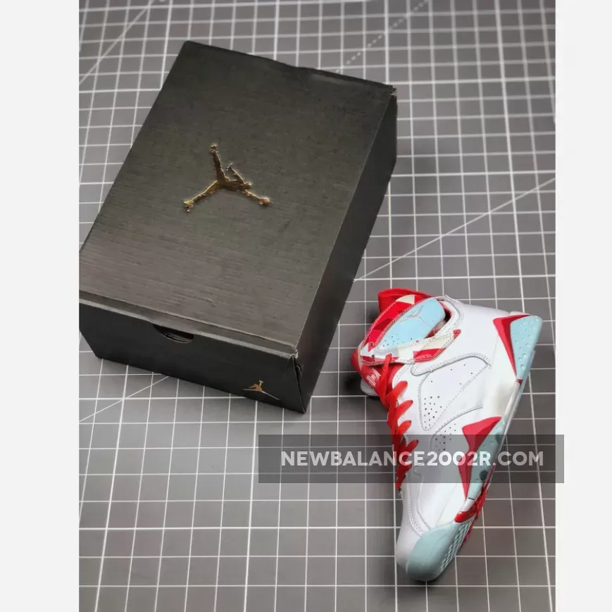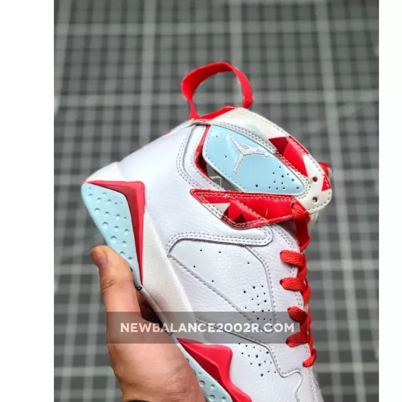 While the theme to this collection has yet to be confirmed, this release comes dressed in a White, Topaz Mist, Ember Glow, and Gym Red color scheme. Much like the other models, the shoe features a White leather upper paired with Light Blue and Red contrasting accents. A unique pattern design is used along the ankle collars completed with a set of Red or Light Blue laces.