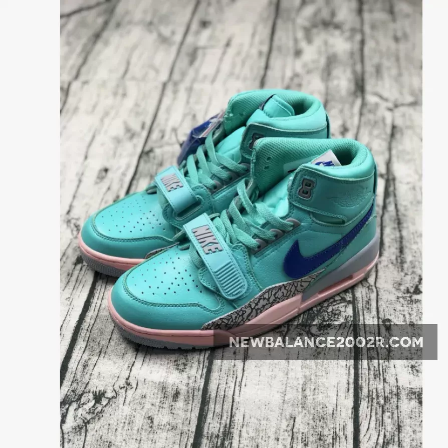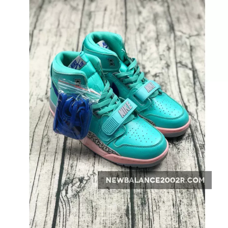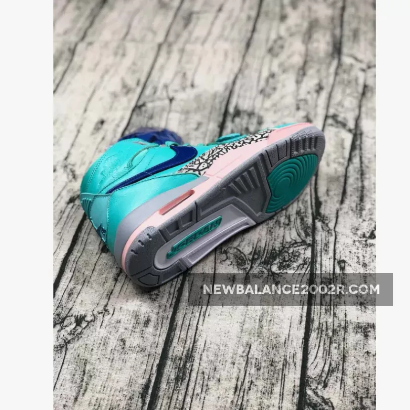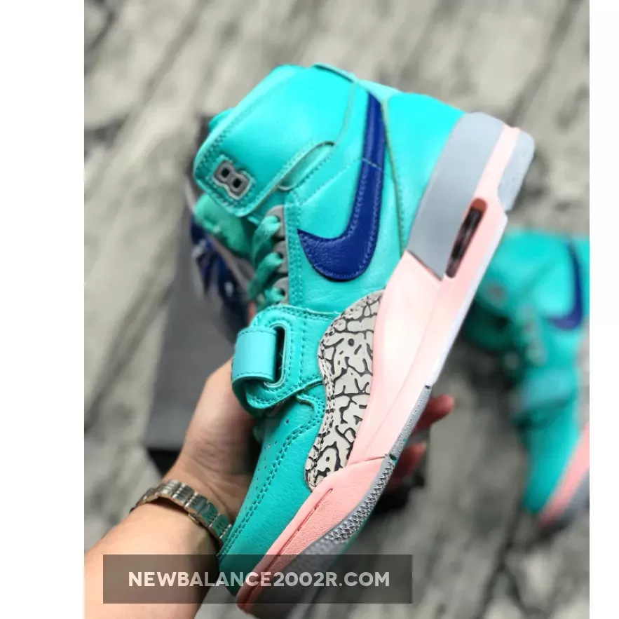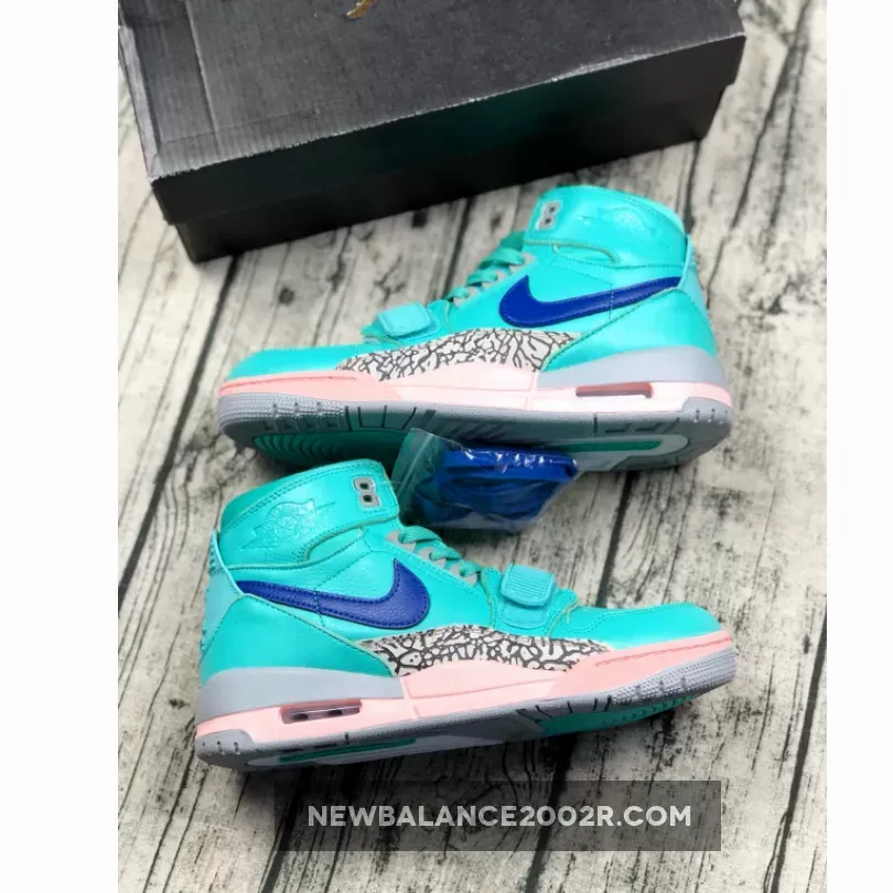 Dressed in a Hyper Jade and Bright Blue color scheme. This Jordan Legacy 312 features a Jade leader upper with Blue accents on the tongue and Swoosh logos. Signature elephant print overlays atop a White midsole and Grey rubber outsole completes the design.