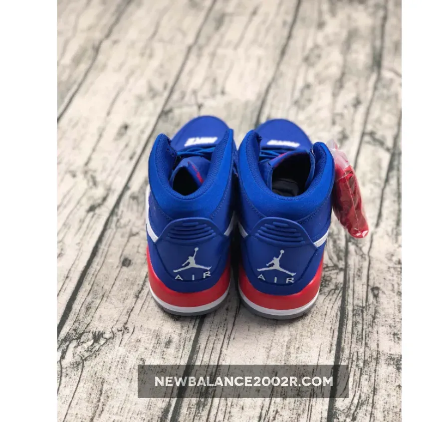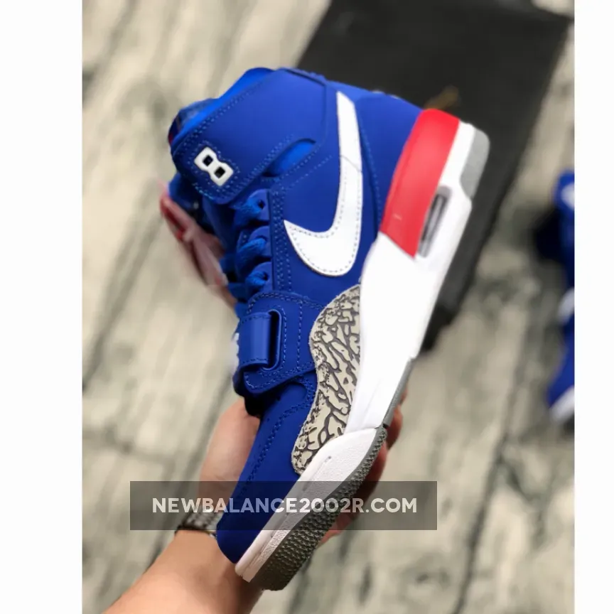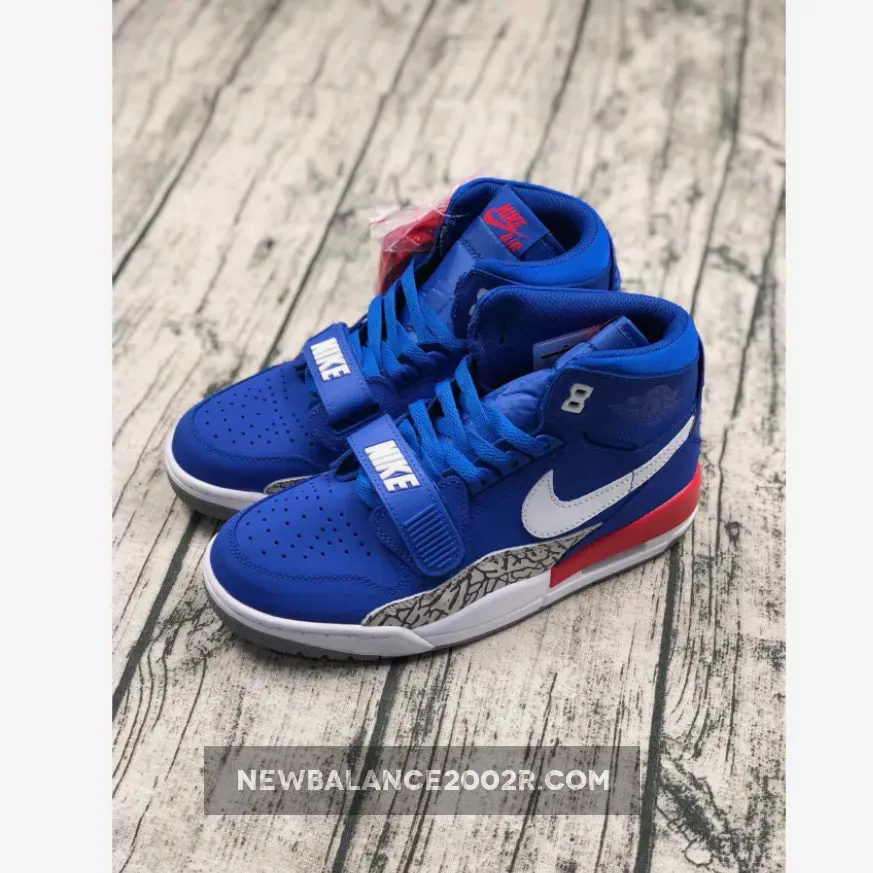 Dressed in a Bright Blue, White, and University Red color scheme. This Don C x Jordan Legacy 312 features an all-Blue upper paired with White detailing on the Swoosh logo, heels, insole and strap. Red accents covers the tongues, midsole, and outsole along with the models signature elephant print overlay.