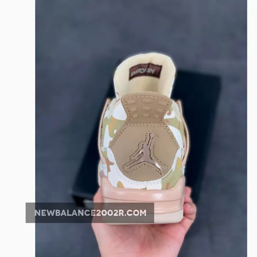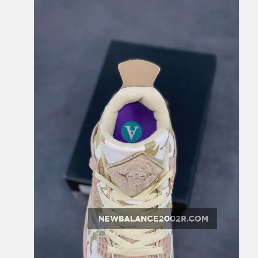 This Aleali May x Air Jordan 4 features a ripstop nylon upper fully covered in a Brown and Green camouflage print to give off a military theme. Other details includes suede midsoles and heel tabs along with a Purple quilted insole stamped with May’s “A” logo. Rounding out the design is a removable velcro “Jumpman Compass” patch replacing the standard “Flight” branding on the tongues.