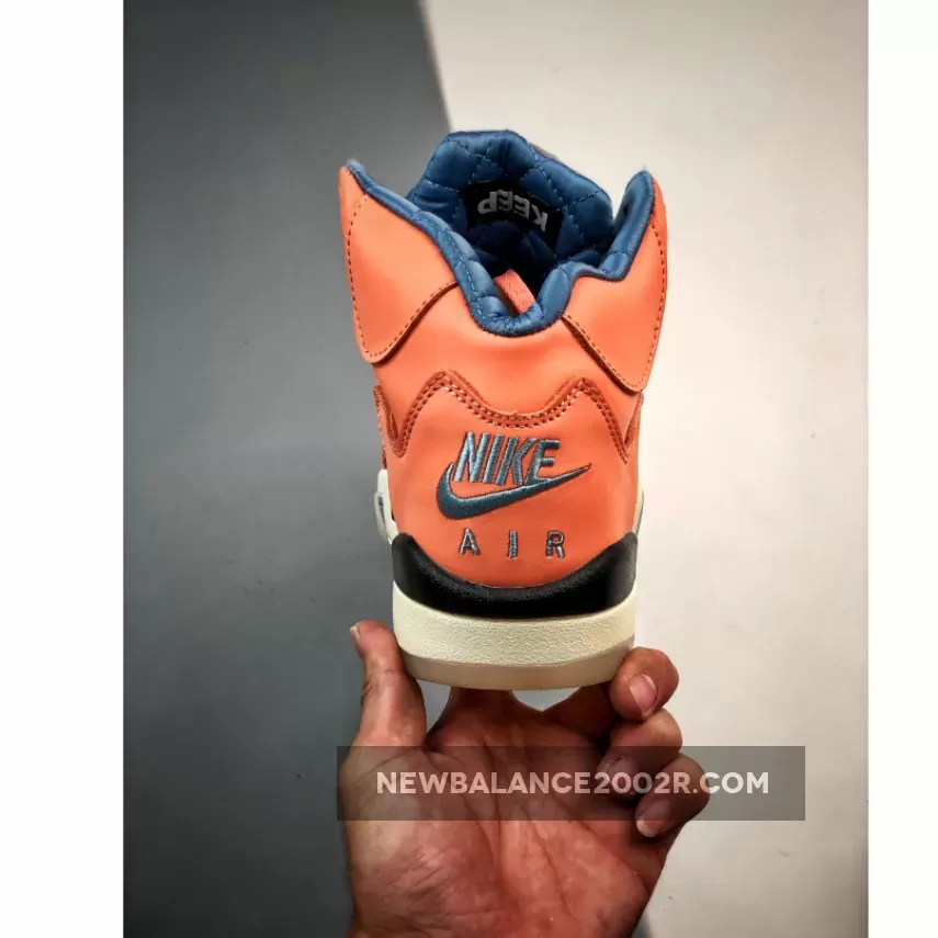 It’s no secret that DJ Khaled is a big Air Jordan fan. The hitmaker has a serious collection of rare styles and personal pairs which is estimated to be worth a cool $8 million, but now he’s teamed up with the Jumpman team for a collaborative pack of Jordan 5s. One of the highlights of the collection has to be the DJ Khaled x Air Jordan 5 We The Best Orange, so let’s take a closer look at the pair.Arriving in its usual leather construction the We The Best AJ5 comes painted in a perfect pastel orange hue, which covers everything from the leather paneling to the traditional netting at the midfoot window. The same sky blue shade can also be spotted on the heels, where, similar the Bone colourway dropping at the same time, embroidered ‘We The Best’ branding calls out the collaborative effort. The Orange DJ Khaled Jordan 5 is then finished with a “Sail”-coloured midsole, and another WTB branding hit features on the translucent treading underfoot.