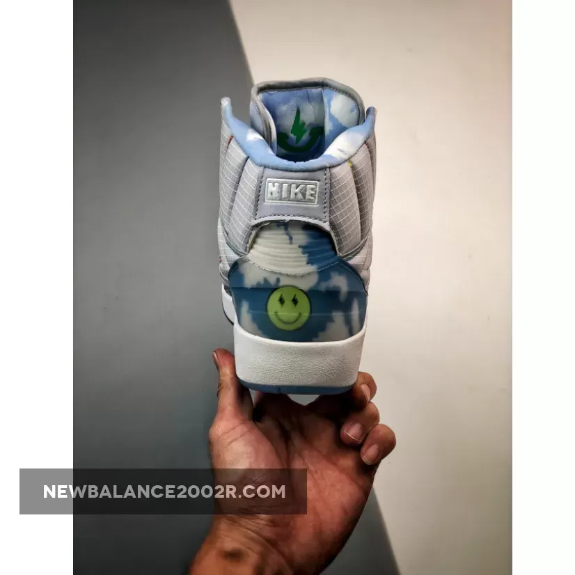 This offering of the J Balvin x Air Jordan 2 features a padded-style upper with LED detailing and glow-in-the-dark rubber outsole. Other details includes cloud graphics on the heels and lining, personal branding on the inner tongues and signature smiley face motif on the heels. The shoe also appears to be releasing in family sizing.