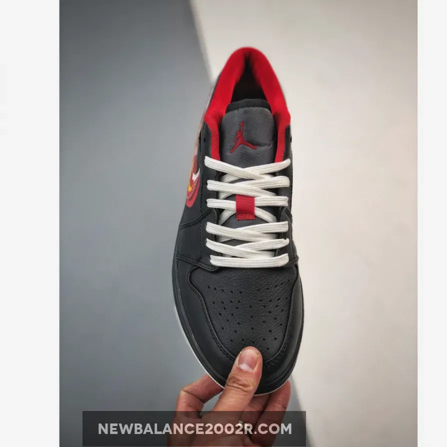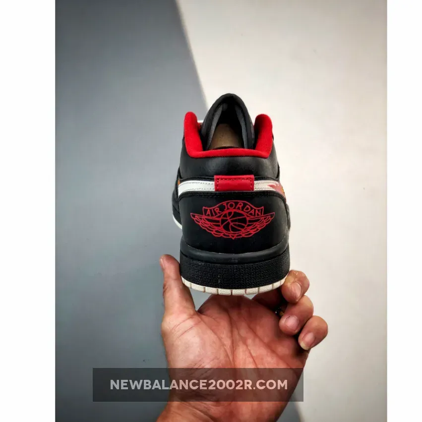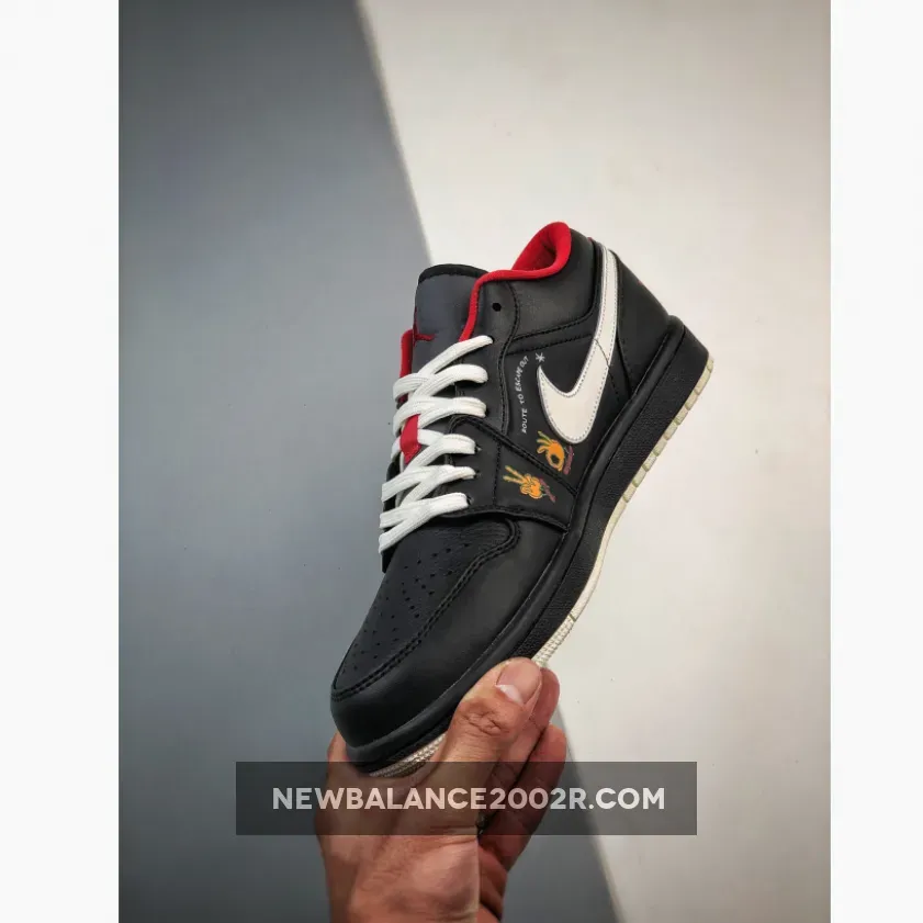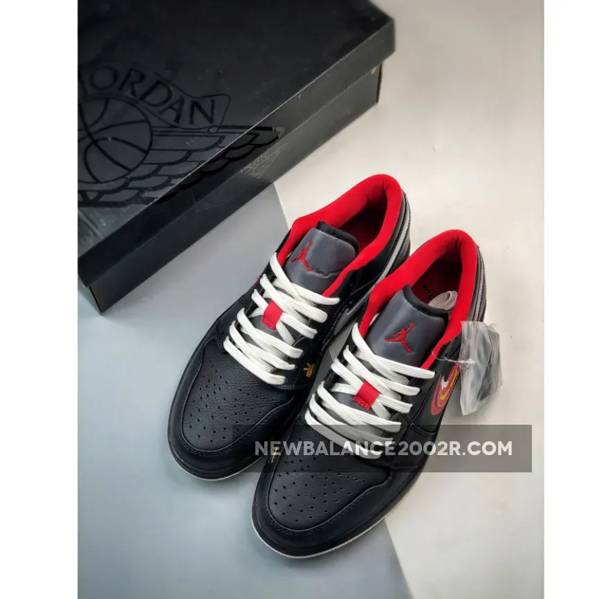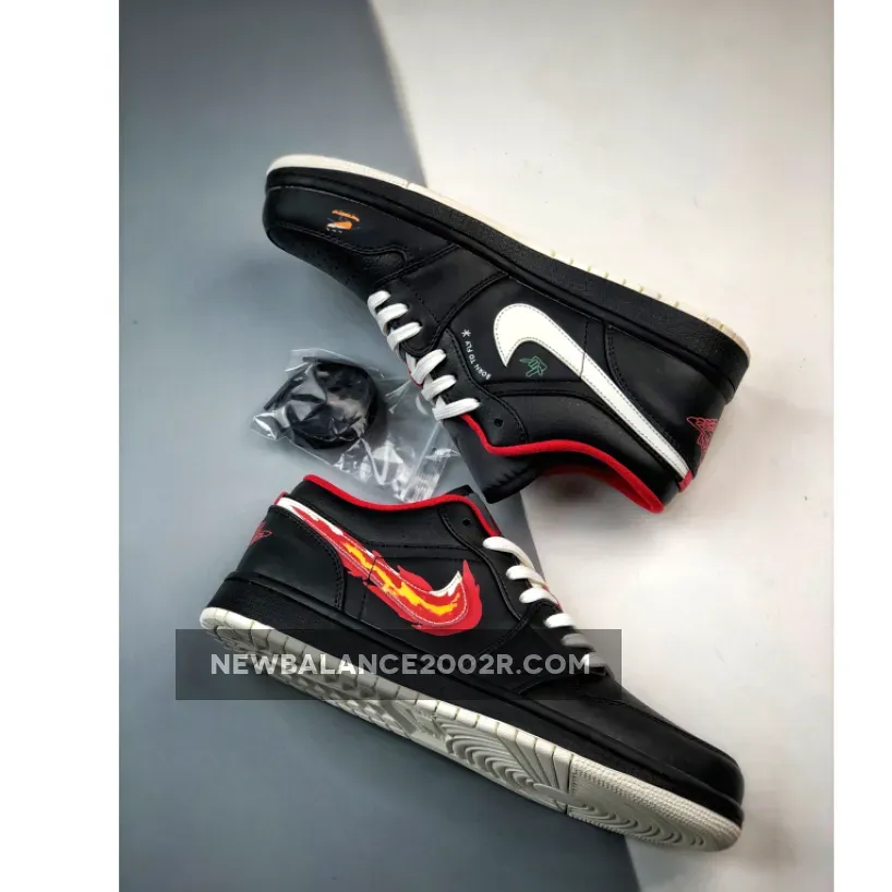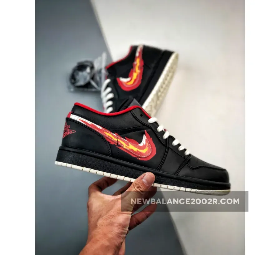 Dressed in a Black, Sail, White, Fitness Red, Iron Grey, and Shock Yellow color scheme. This offering of the Air Jordan 1 Low comes constructed in a leather build with mesh tongues and lining. It features Black covering majority of its upper with Red contrasting accents on the branded areas. Highlighting the shoe is a flame Swoosh on the lateral along with penciled illustrations of skaters and hand signs on the medial. Behind the tongues are even more illustrated graphics to go along with the skate-theme.