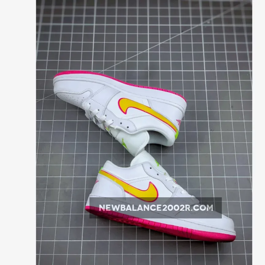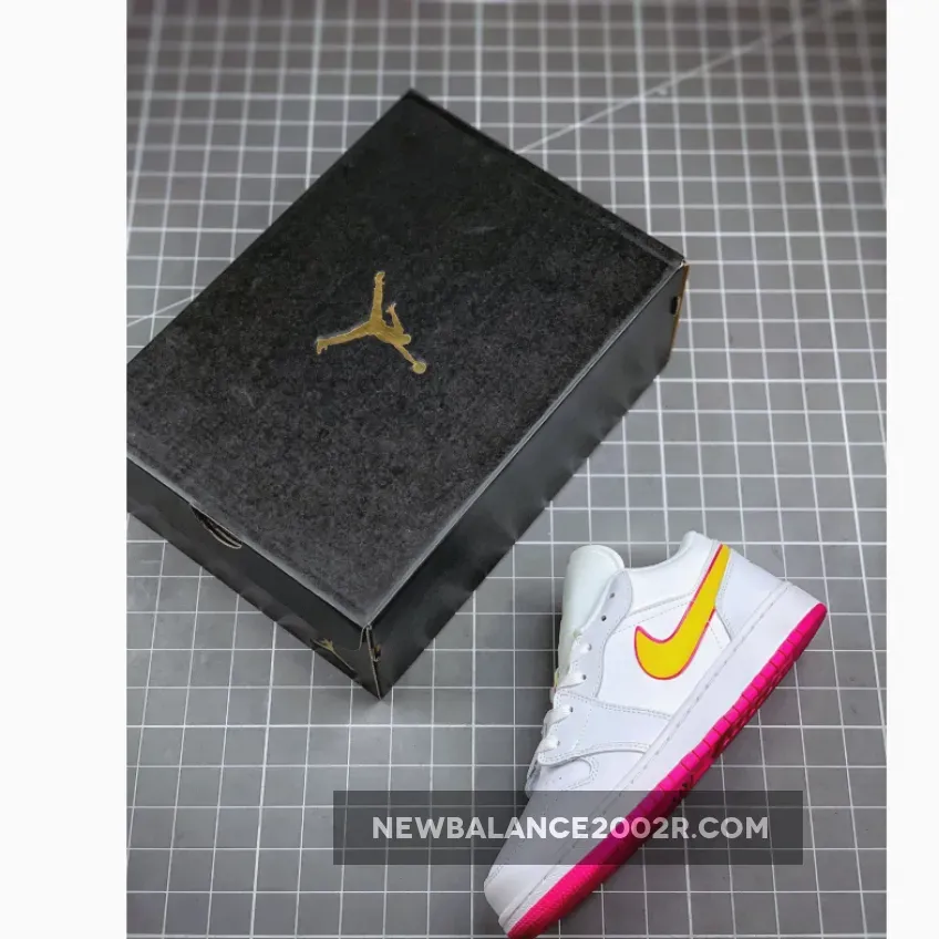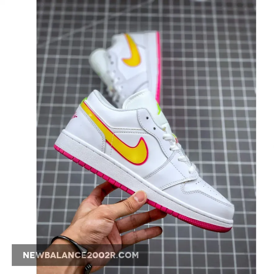Aside from its angelic white uppers, its Swooshes are clothed with vibrant yellow skins and bordered by hot pink trim for a combination reminiscent of ice cold lemonade refreshments. The second-mentioned hue also finds its way to wings logo as well as the outsole in which it wraps entirely. Moreover, sprinkles of volt make an appearance atop the Jumpman logos, rectangular heel tab, and on the #2 in “23” stitched onto the throat tab.