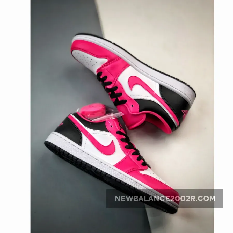 this Air Jordan 1 Low comes dressed in a Fierce Pink, Black, and White color combination. Clean and vibrant, the low-top dons a combination of “Fierce Pink/Black-White” across its leather construction.