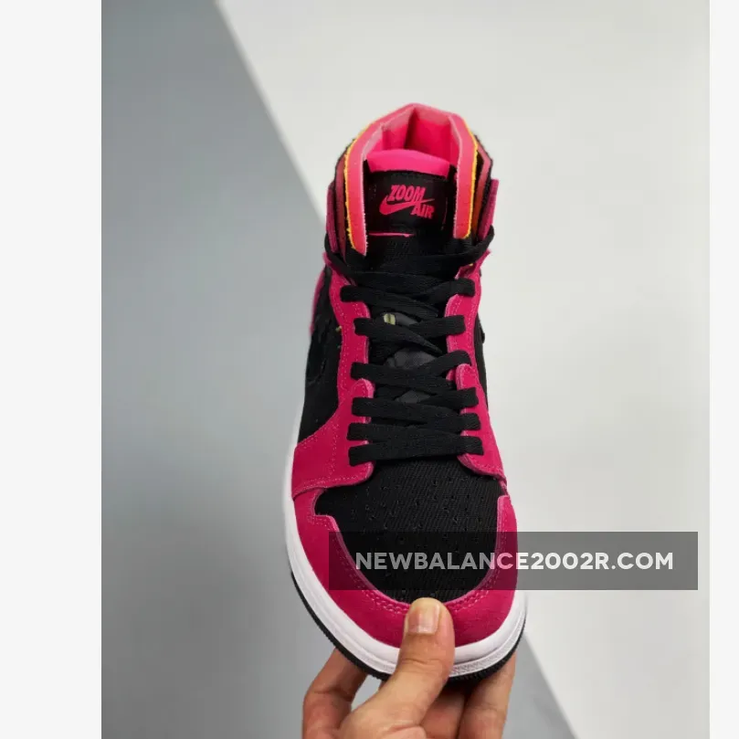Dressed in a Fireberry, Hyper Pink, White, and Black color scheme. This Air Jordan 1 features a Black mesh upper with Fireberry suede overlays. Other details includes padded tongues and ankle collar, Pink “Zoom Air” tongue tags and branded insoles, cut-out Swooshes atop a White midsole and Black/Pink rubber outsole completes the design.