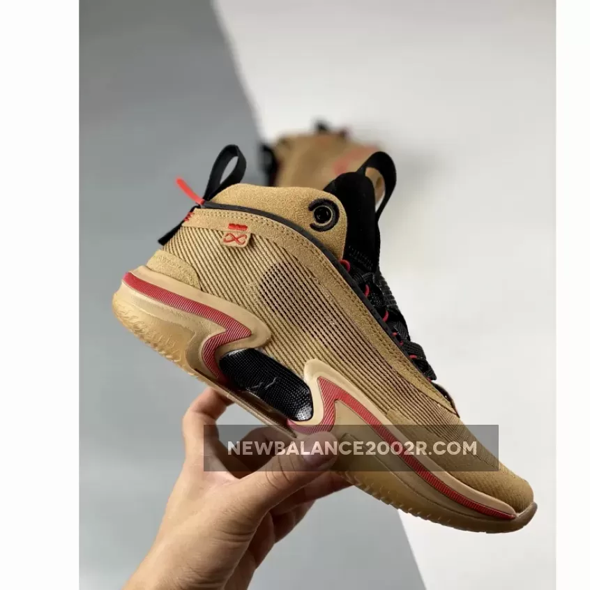Taking similar cues from his Air Jordan 8 and Jordan Series 01, the sneaker uses a twine upper that is made of leno-weave which makes the upper durable and breathable with a crackled leather making up the upper half of the sneaker. Red accenting is seen throughout, most prominently on Rui’s logo and Jumpman on each sneaker respectively on the lace pocket and the striping on the midsole. The Air Jordan 36 uses a Zoom strobel setup with a black shank plate and a gum outsole to finish off the sneaker.
