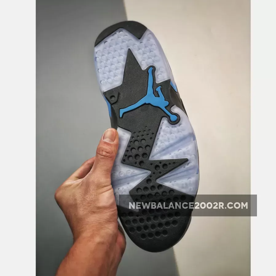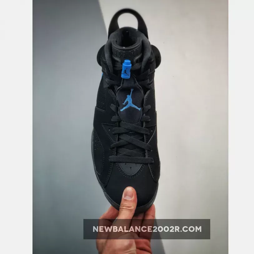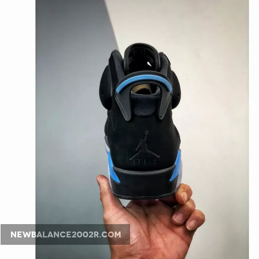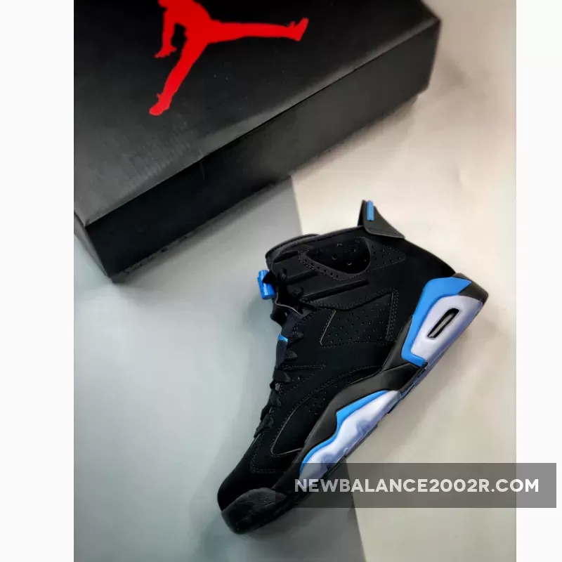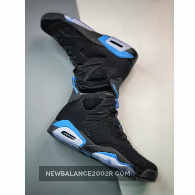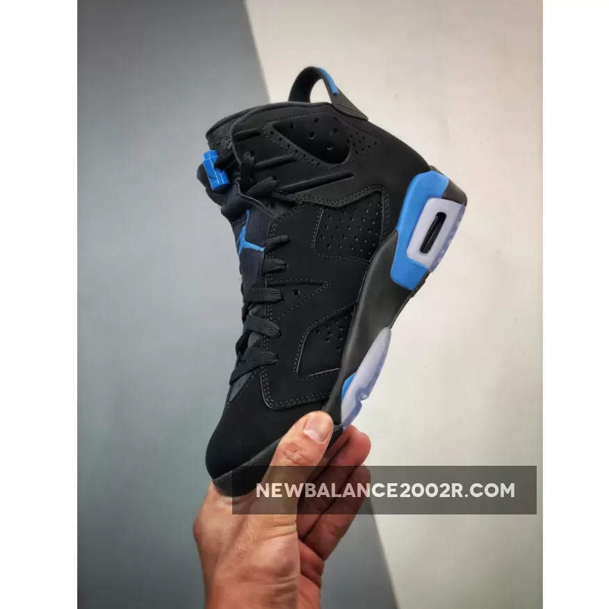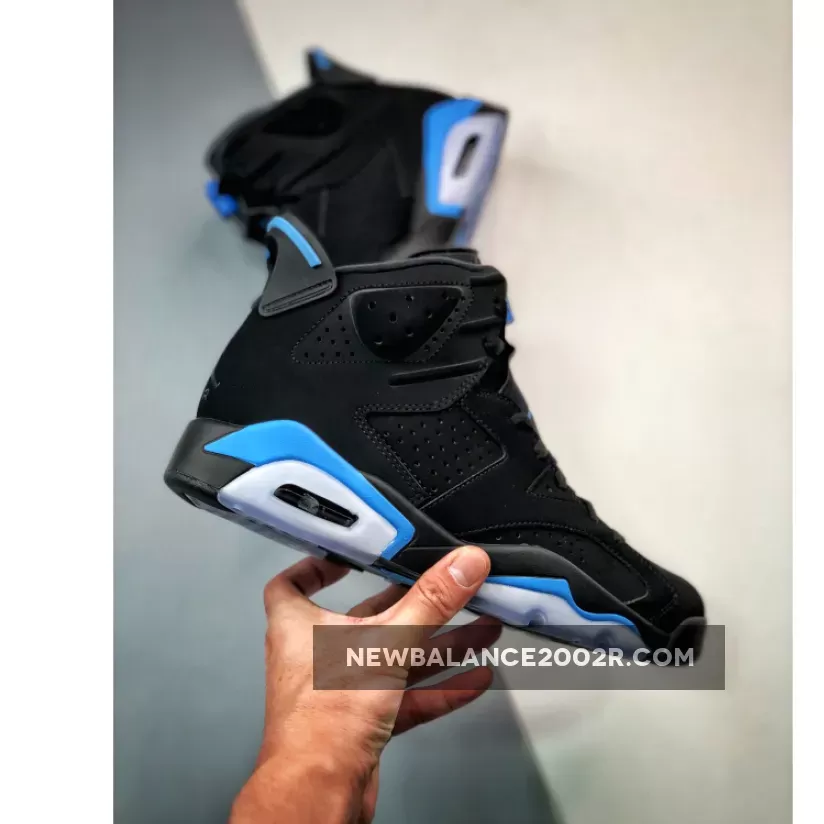 This Air Jordan 6 features a full Black nubuck upper. Perforations hit the sidewall and extend across that chunky ankle pod. Hits of vibrant blue feature to the Jumpman branding stamped to the tongue as well as the midsole underfoot. A visible Air Unit keeps every stride powered with weightless energy to the heel. The pair also sports an icy, translucent outsole.