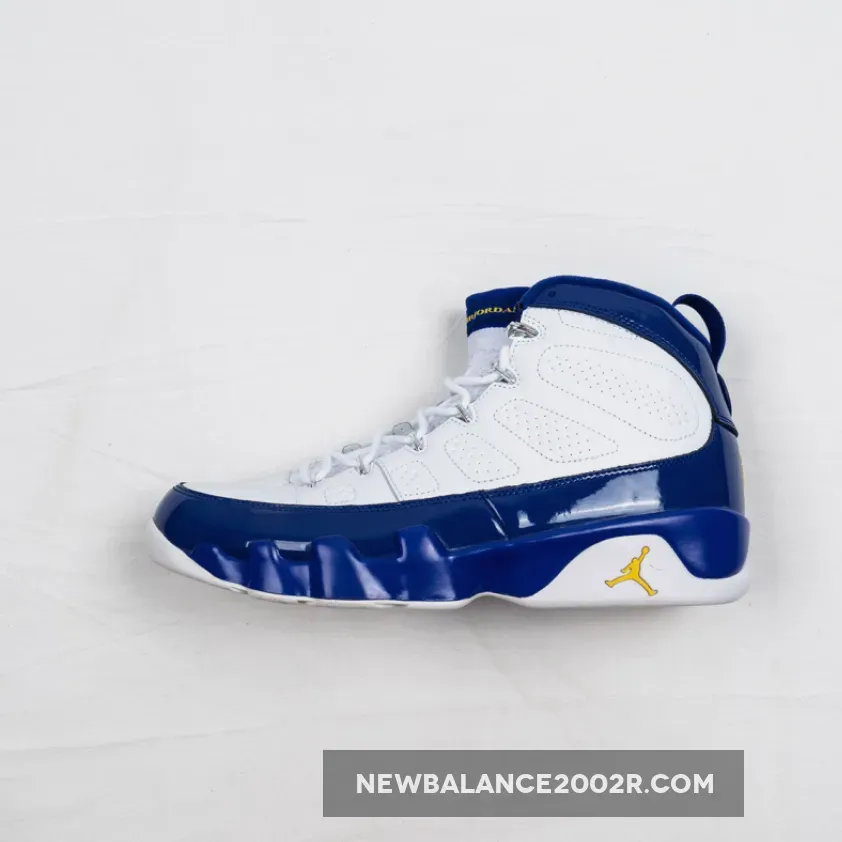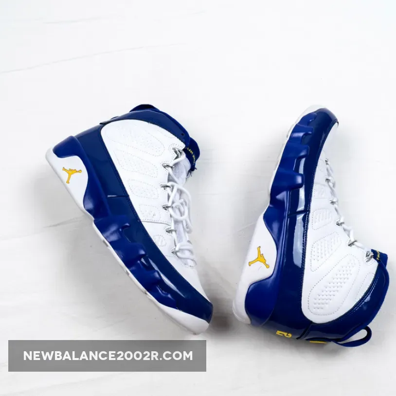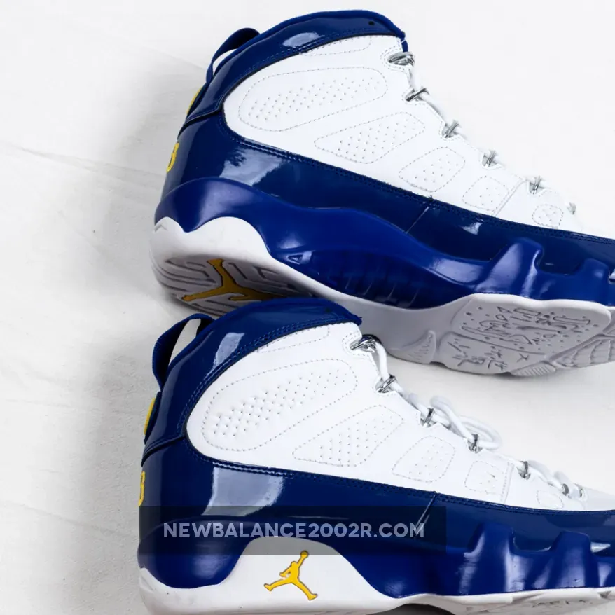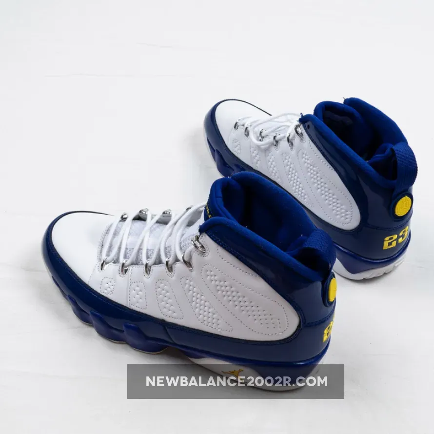 This Kobe Bryant Player Exclusive release of the Air Jordan 9 comes dressed in the LA Lakers team colors with a mixture of White, Concord and Tour Yellow. The shoe features a full White-based leather upper with Purple Concord patent leather overlays, Chrome eyelets and Tour Yellow accents hitting the branding throughout. Unlike the PE version, the retail pair will come with the traditional number “23” on the heels instead of the number “8” seen on the original sample.