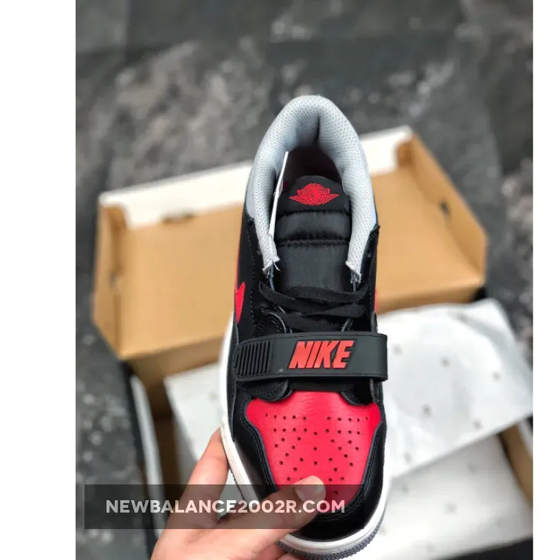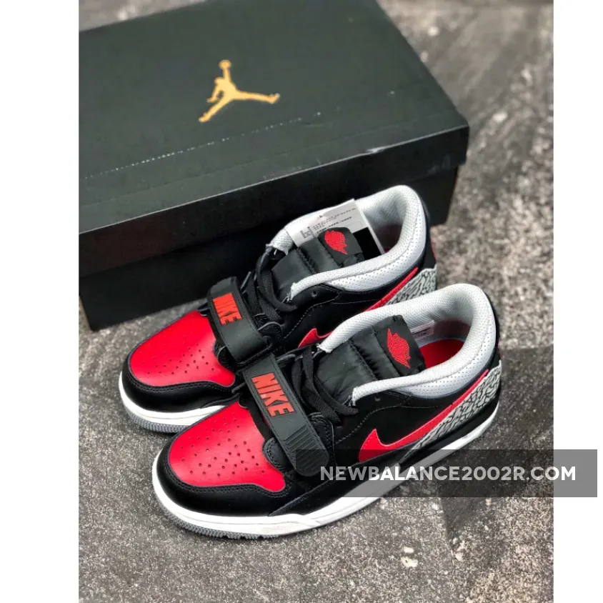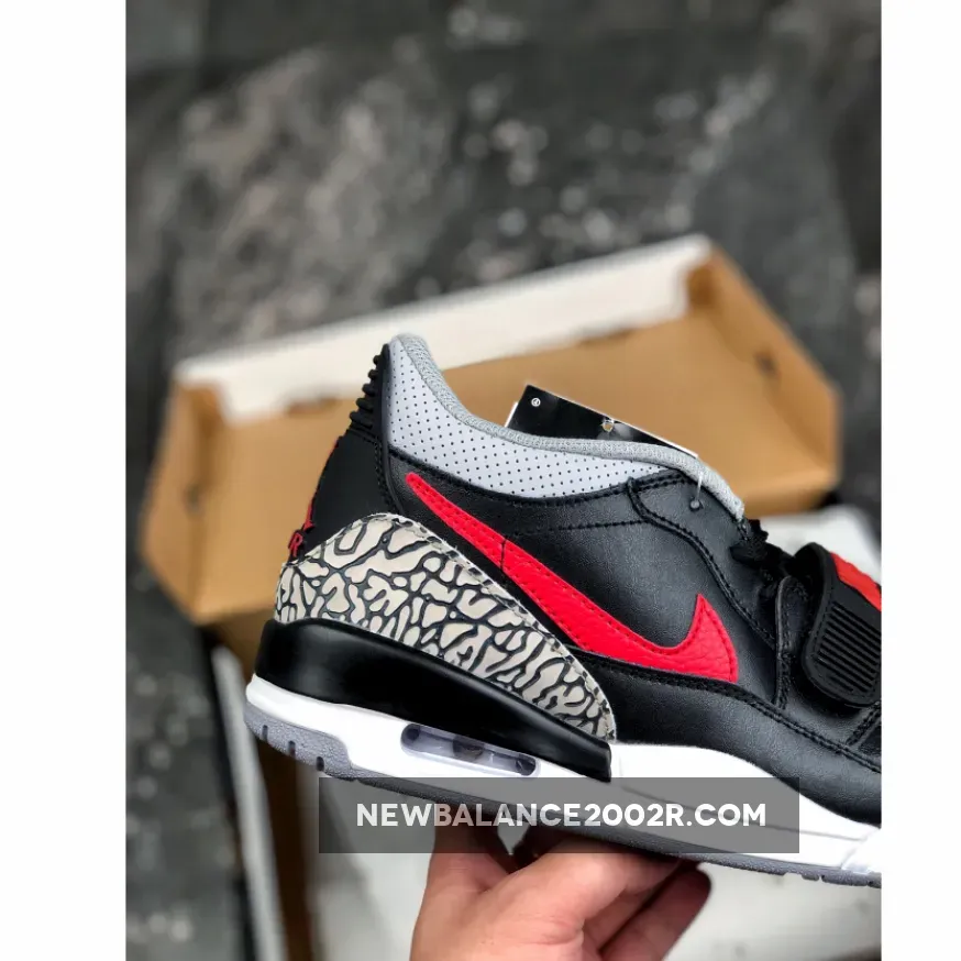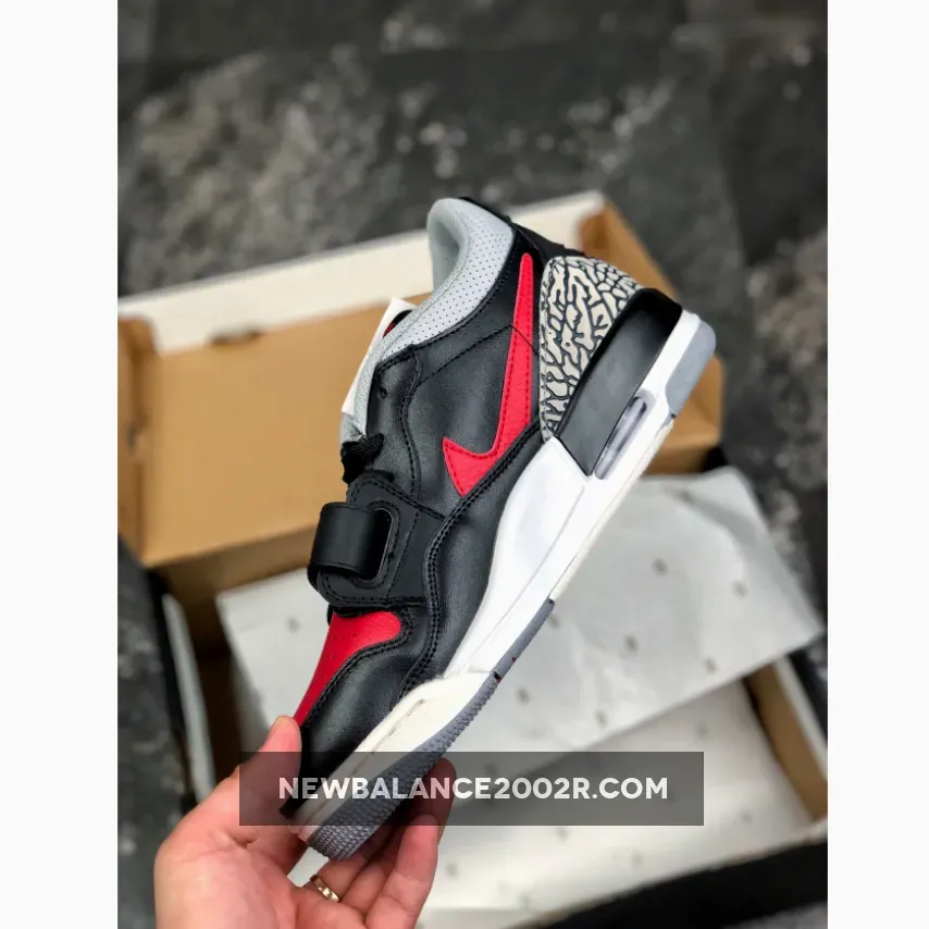 This low top iteration of the Jordan Legacy 312 comes dressed in a Black leather upper accented by the Red hits on the toe and Swoosh alongside the elephant print noted on the heel overlay with a Grey perforated ankle collar..