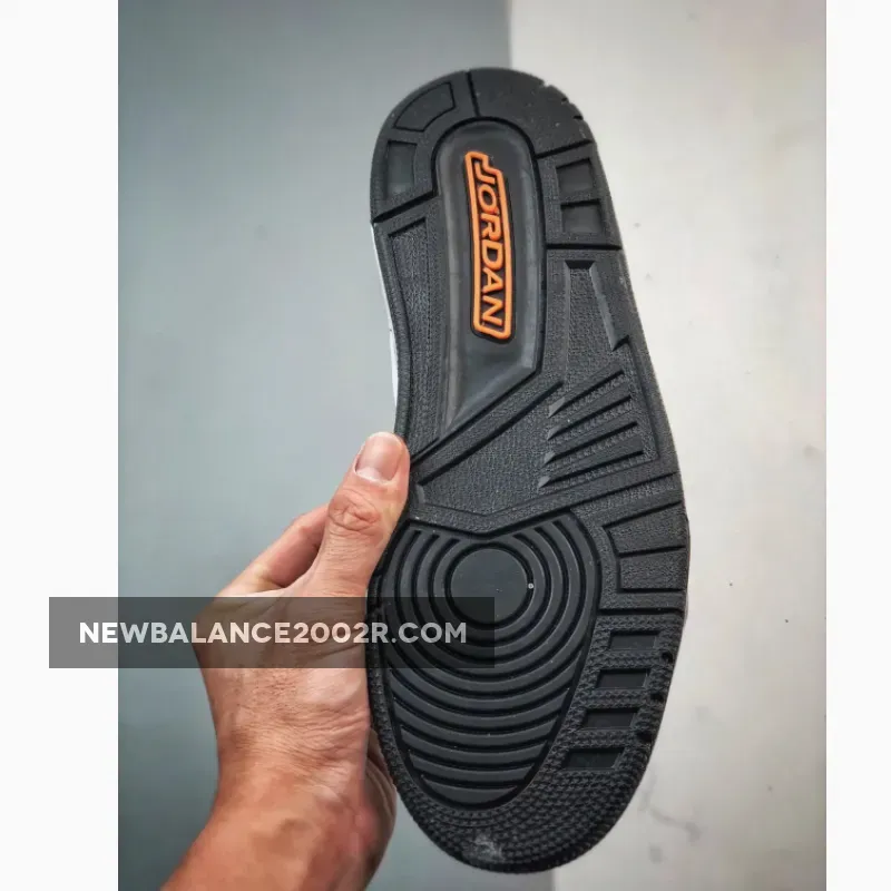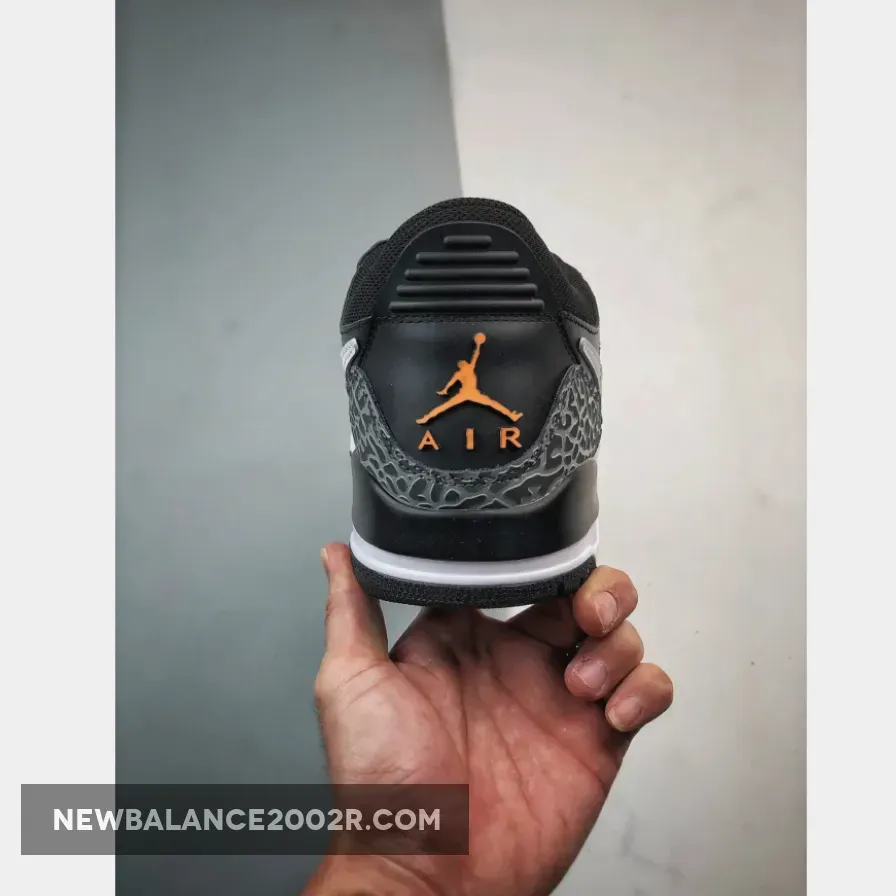Vibrant Orange accents on branded areas infuse the shoe with the distinctive “Fear” aura but also pay homage to the original Jordan 3 Fear colorway.