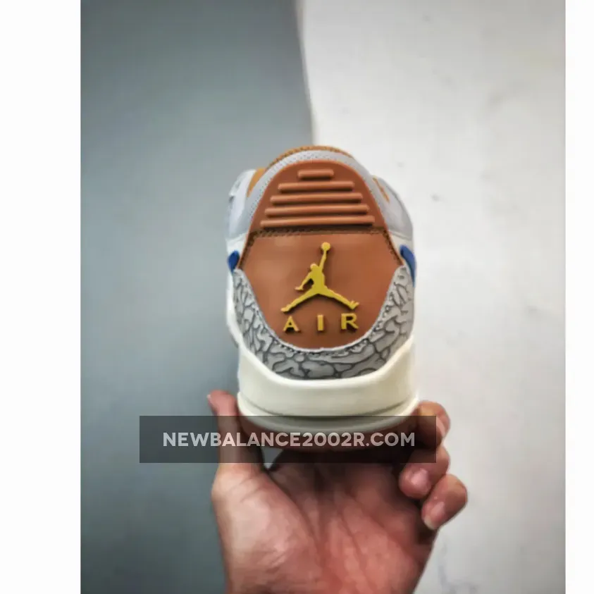 At first glance, the pair captivates with its sail leather uppers, a choice that exudes a timeless elegance. Greyscale accents provide a layered treatment along the mudguard and the elephant print heel counter while a shade reminiscent of vachetta tan consumes the heel tab.