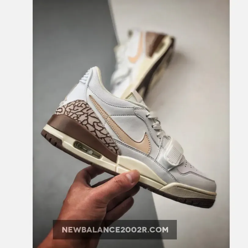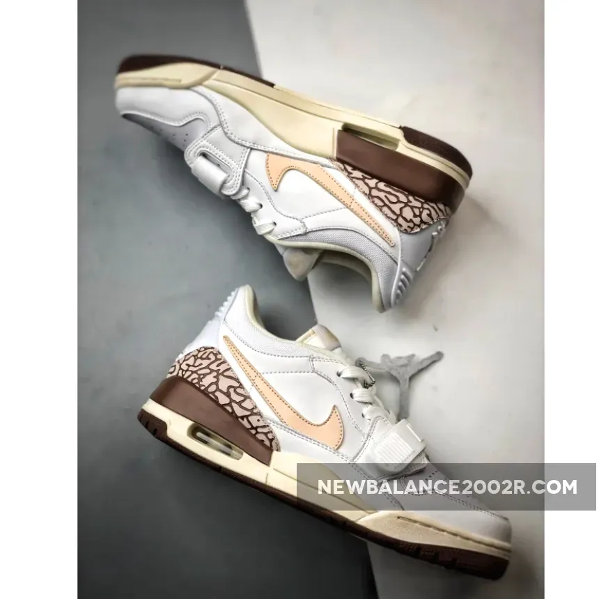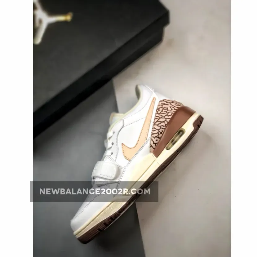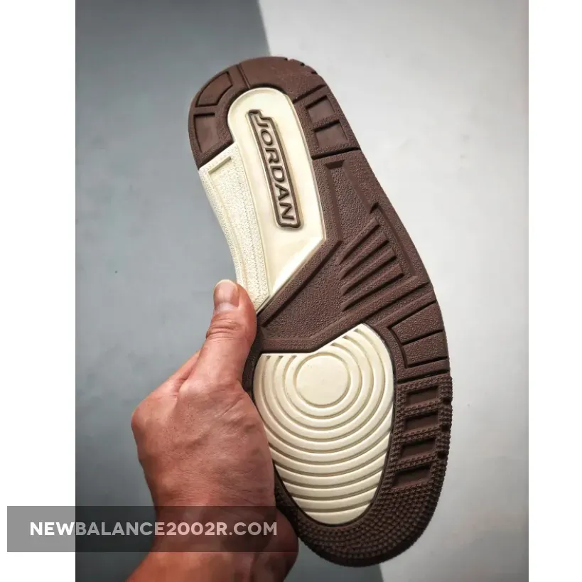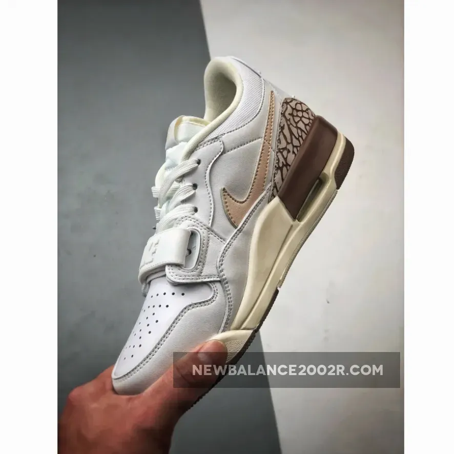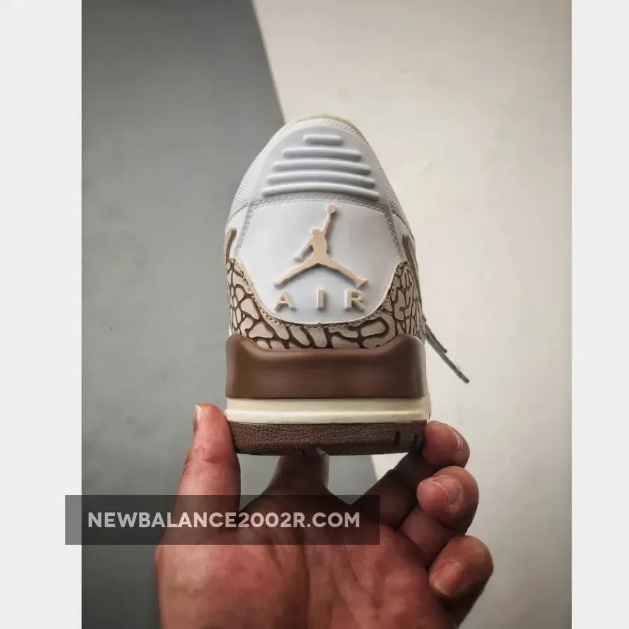 White leather makes up the base layer on this pair, joined by light tan accents on the Swoosh and lining for a tasteful contrast. The heel is adorned with a brown elephant print, echoing the detailing on the sole, while a tan Jumpman logo on the back completes the look.