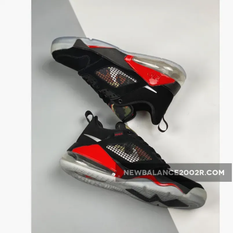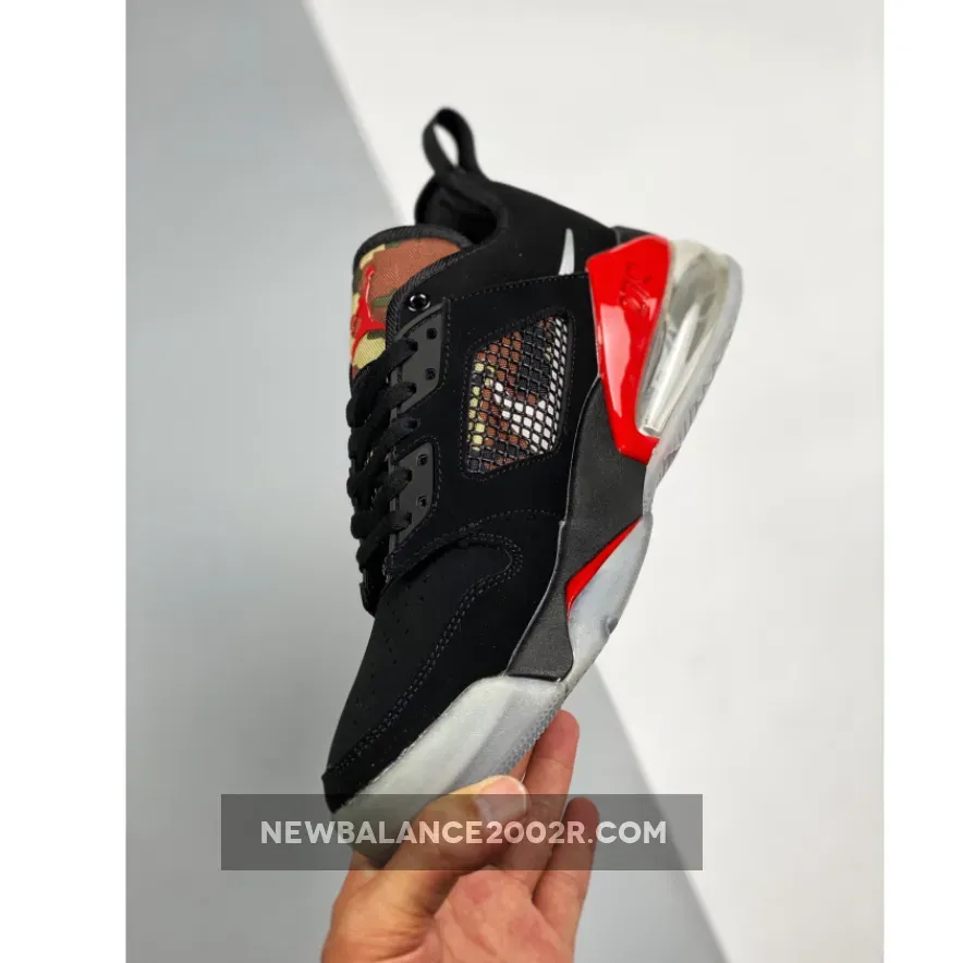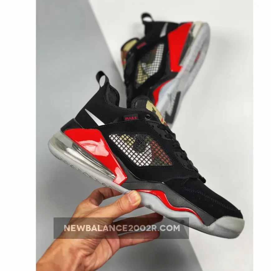 This low-cut edition of the Jordan Mars 270 features a Black nubuck upper paired with Metallic Silver Swooshes on the sides and University Red accents along the midsole, Jumpman logo on the tongues, and “Mars” tag on the medial side. Highlighting the shoe is its camouflage print on the tongues and sides underneath both the netting and Swooshes. An icy translucent outsole completes the design.